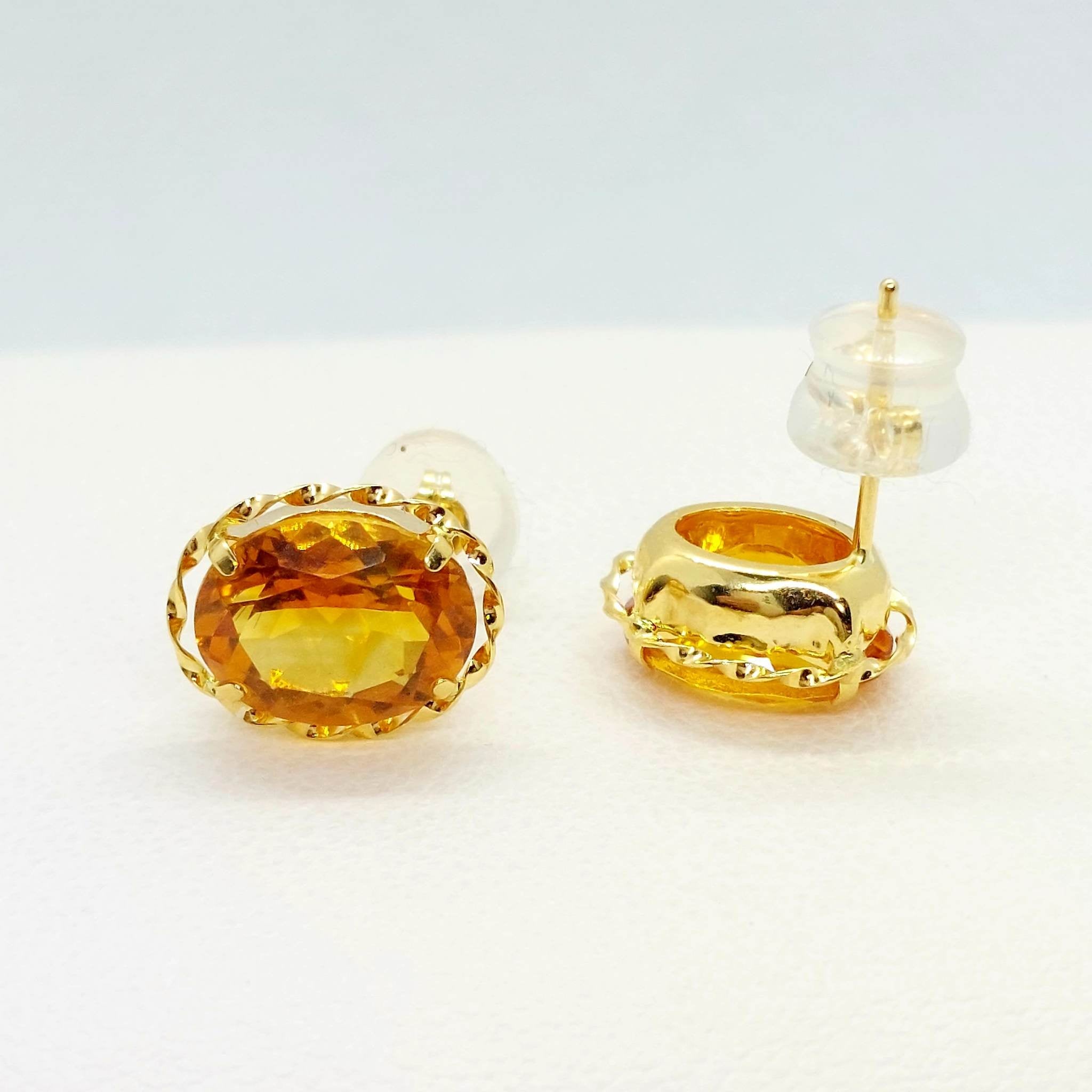 Natural Citrine Stud Earrings with 10-12mm stones in Stainless Steel