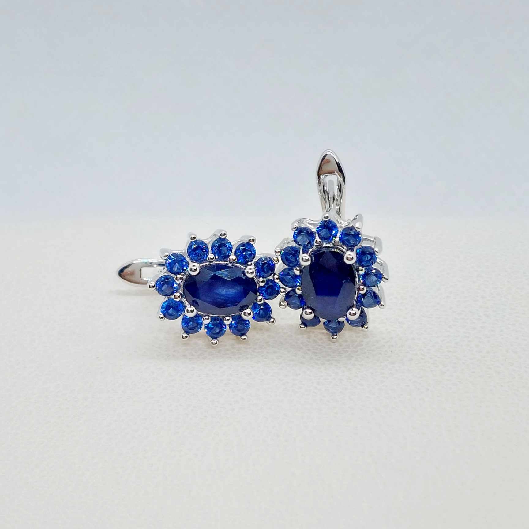 Natural Blue Chalcedony Dangle Earrings in Stainless Steel