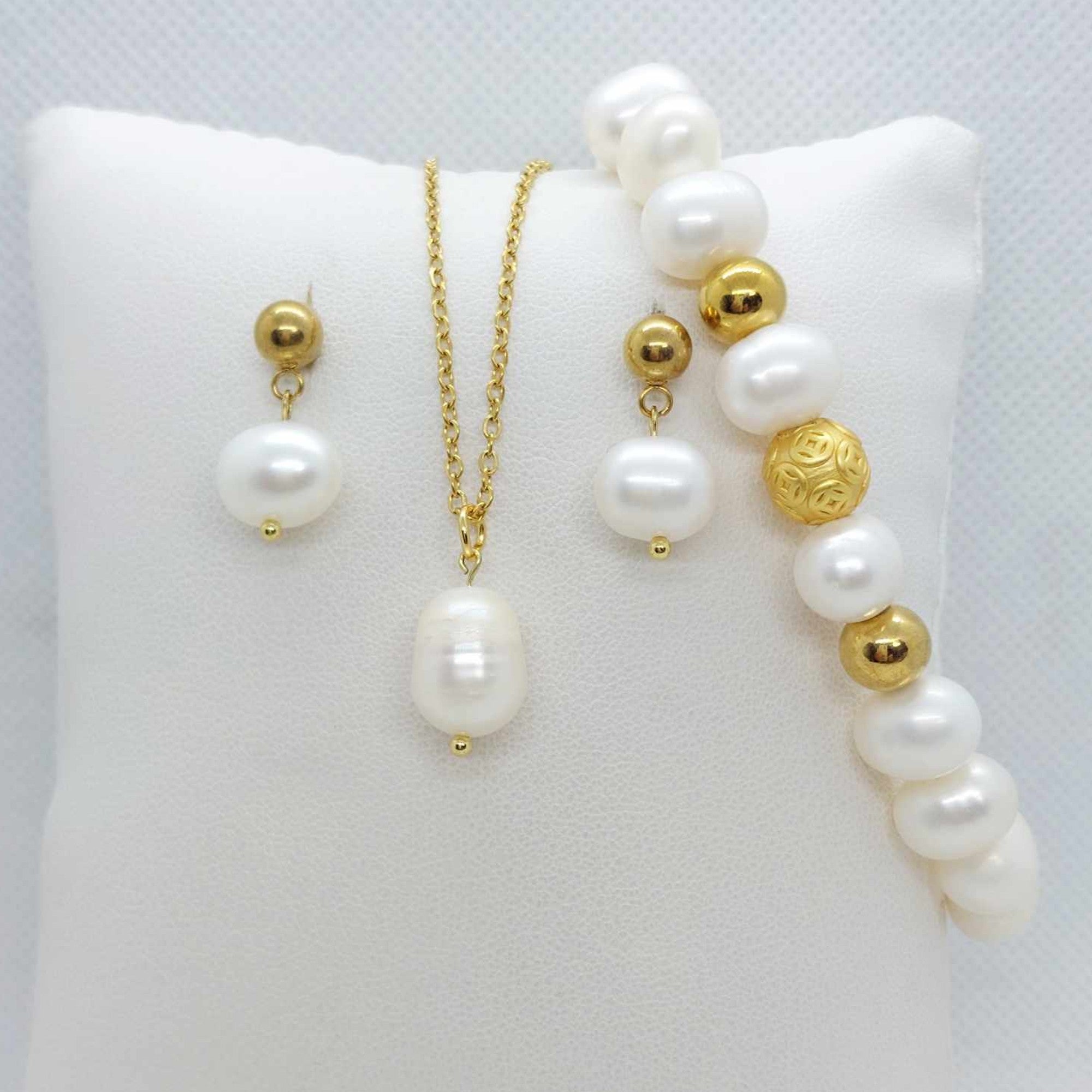Stainless Steel Gold Plated Dangle Earrings with Shell Pearl