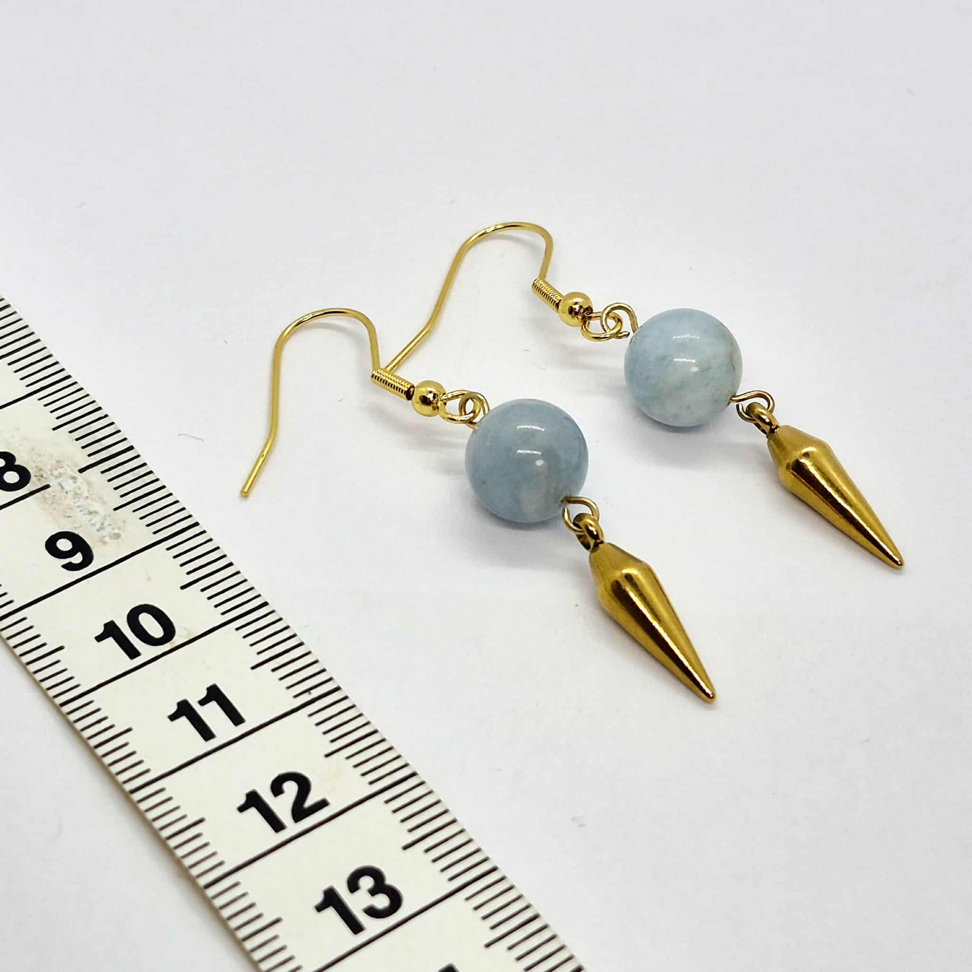 Natural Aquamarine Dangle Earrings in Gold Plated Stainless Steel