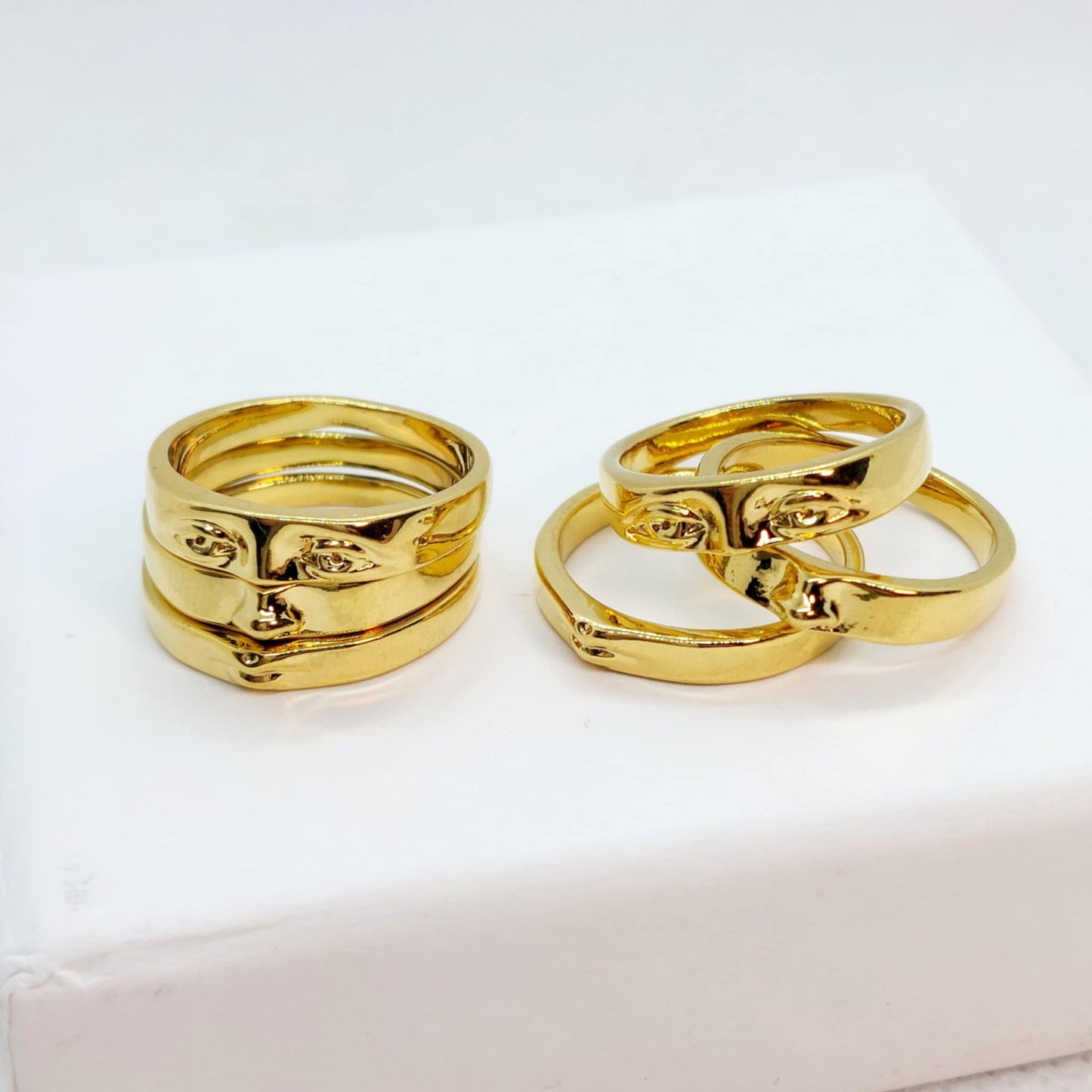 3 Piece Face Ring in Gold Plated Stainless Steel