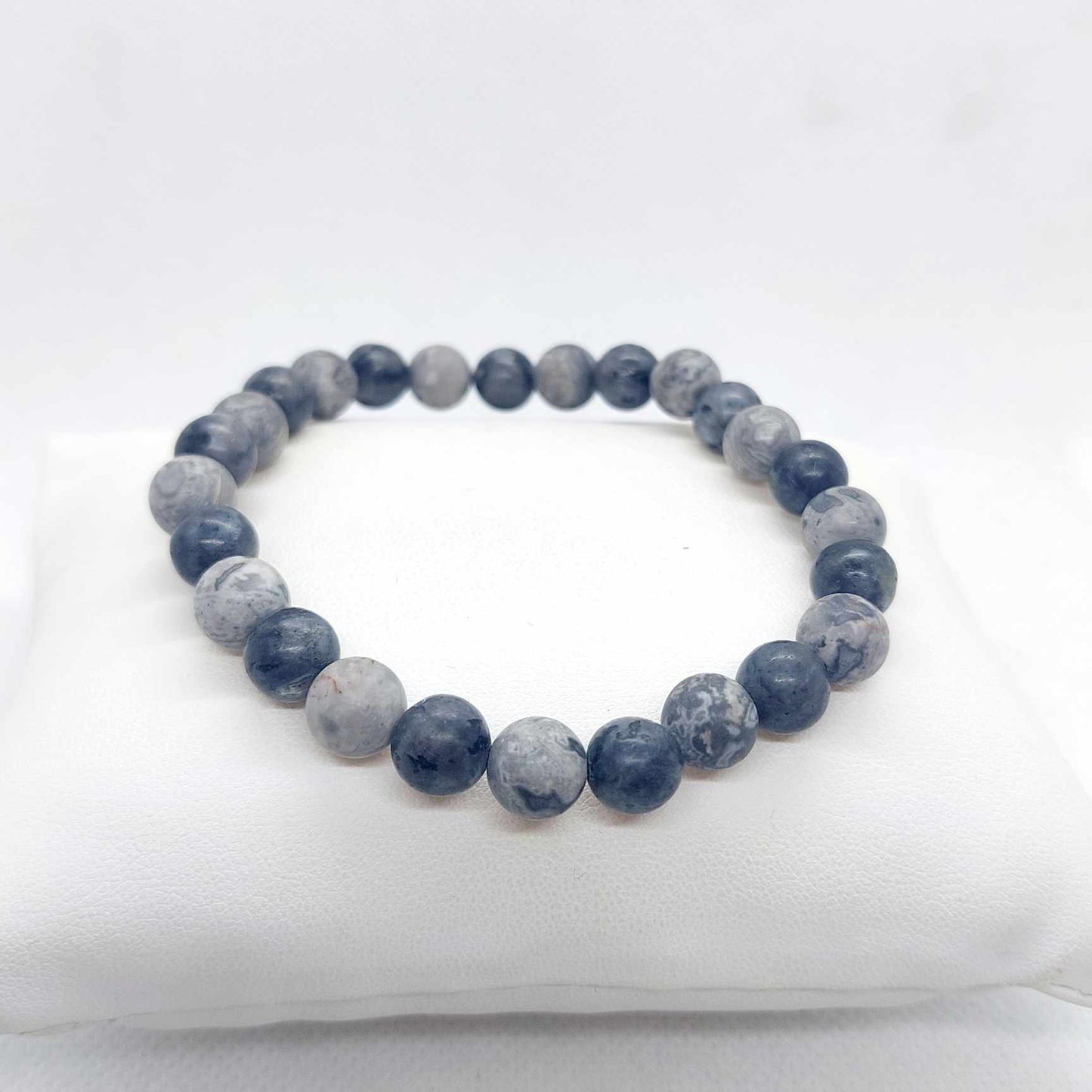 Black and Silver Braided Leather and Grey Jasper Bead Bracelets for Men
