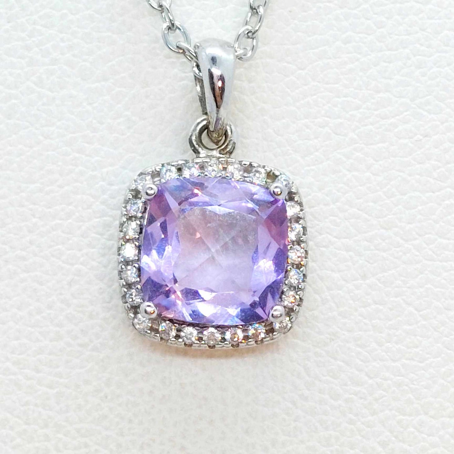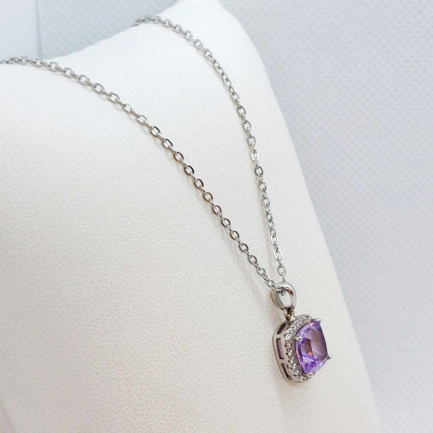 Natural Amethyst Pendant with Zircon with Stainless Steel Chain