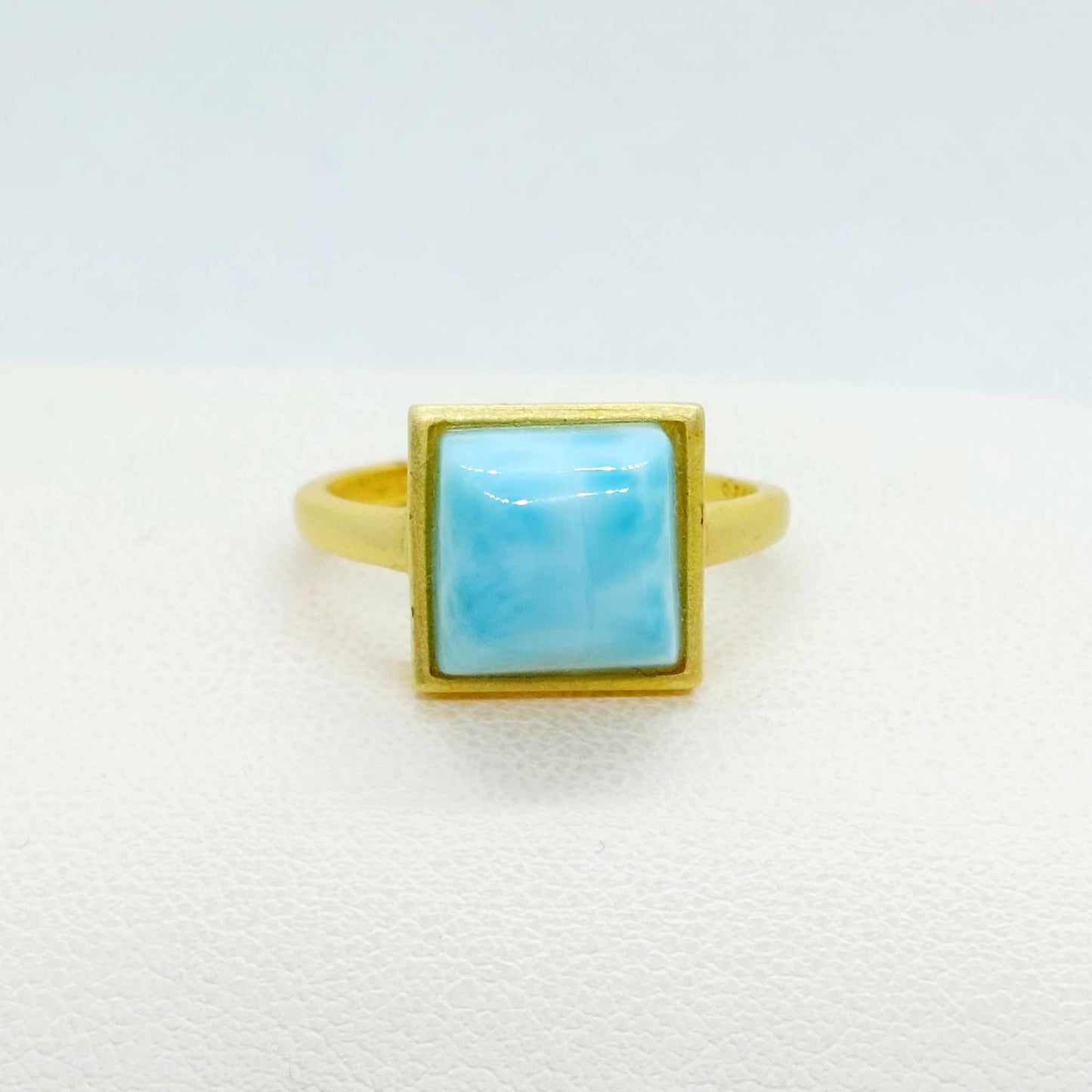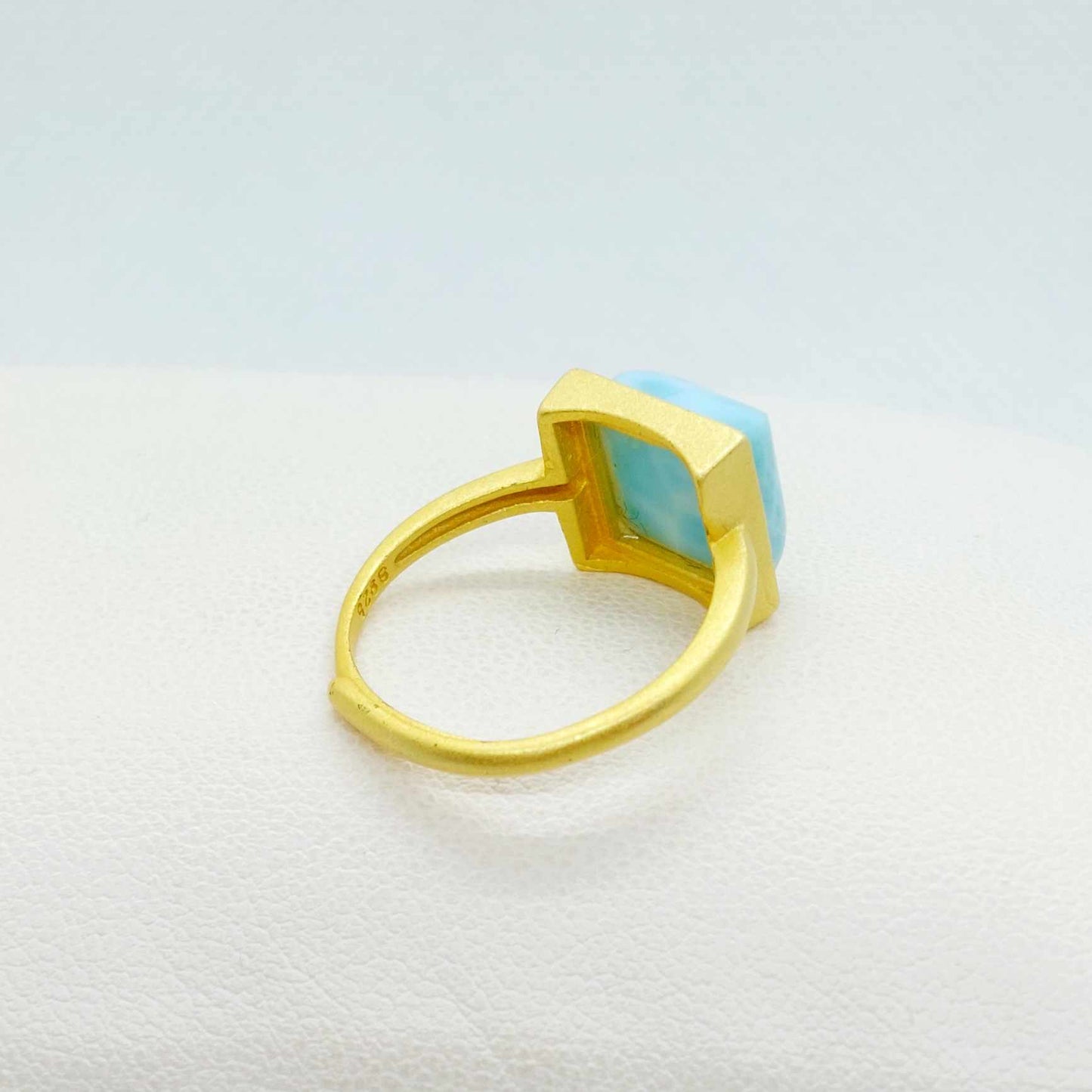 Natural Larimar Ring in Sterling Silver with 18K Matte Gold Plated Resizable