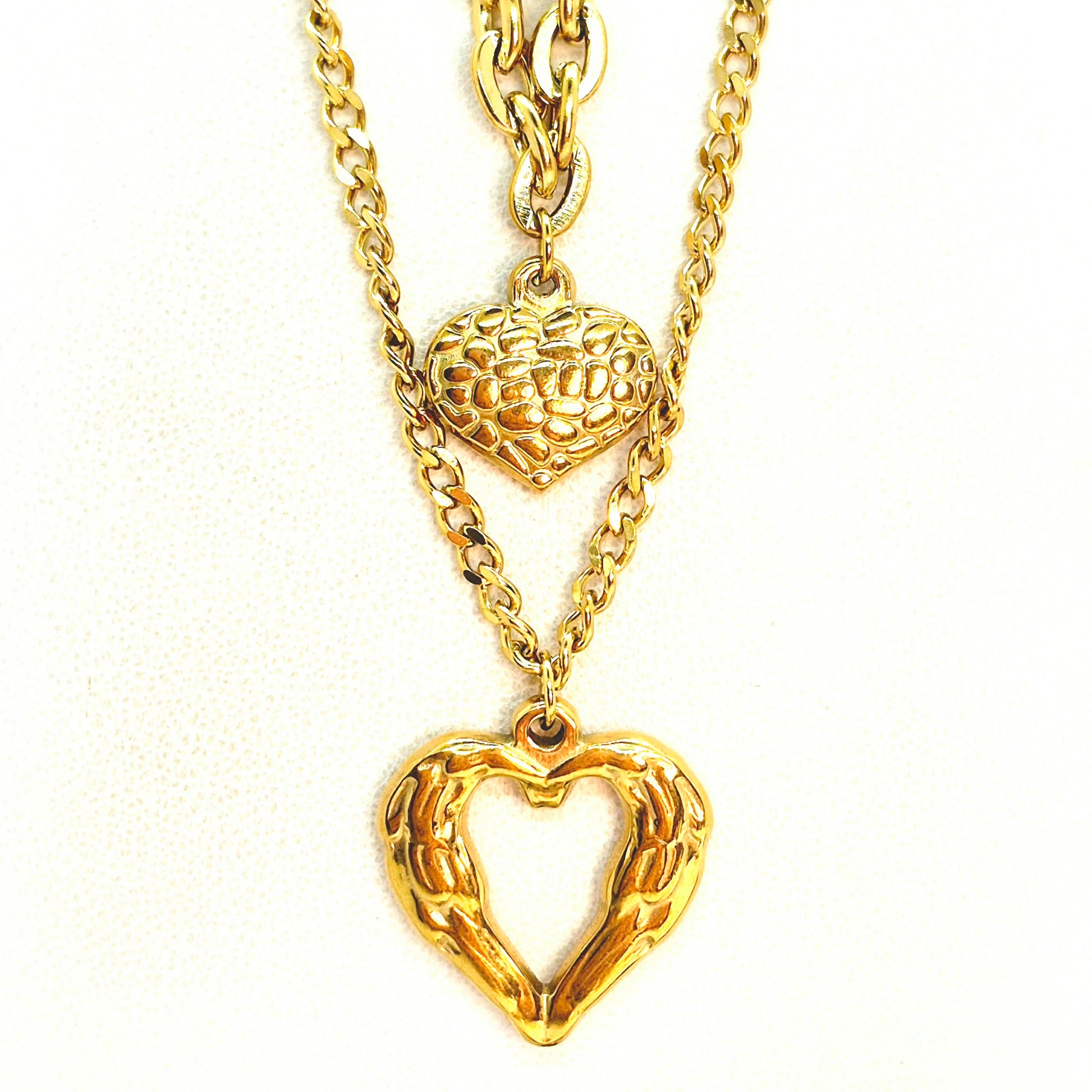 Double Heart Pendant Necklace in Gold Platted Stainless Steel