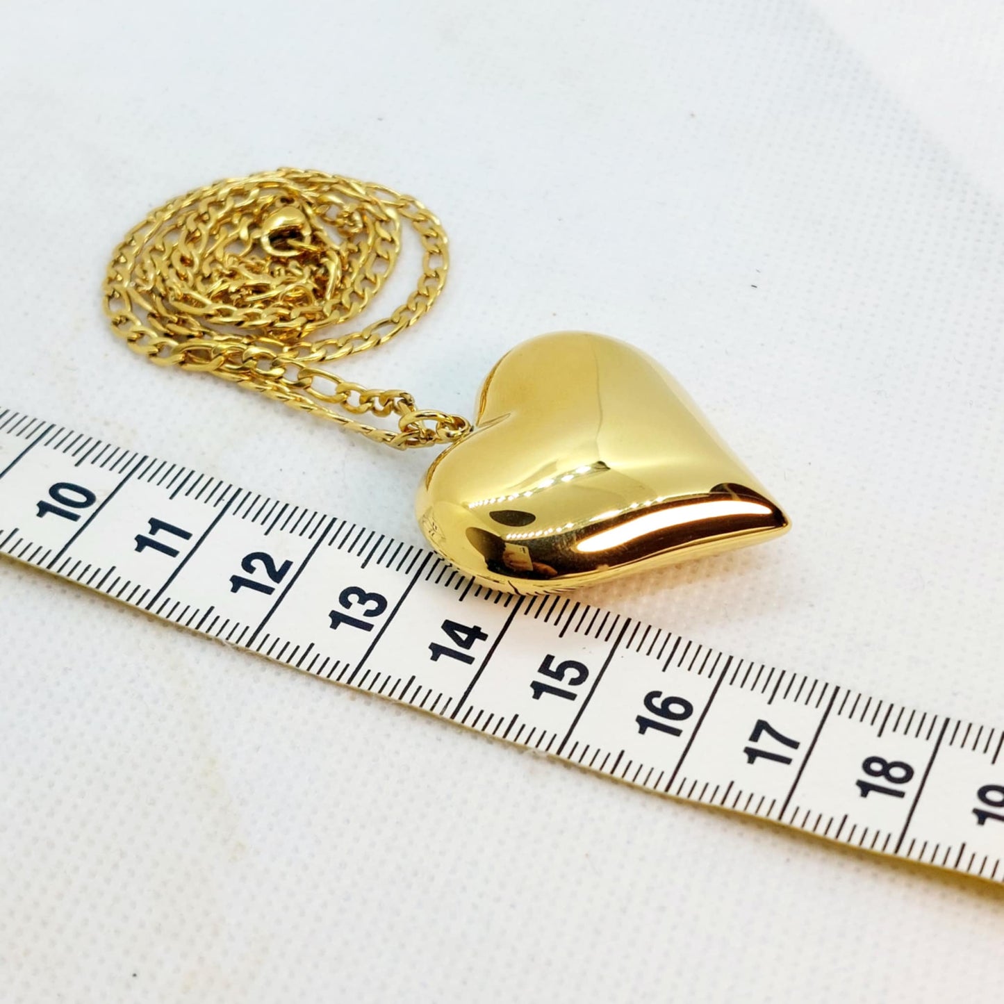 Large Heart Pendant in Gold Plated Stainless Steel with Chain Necklace