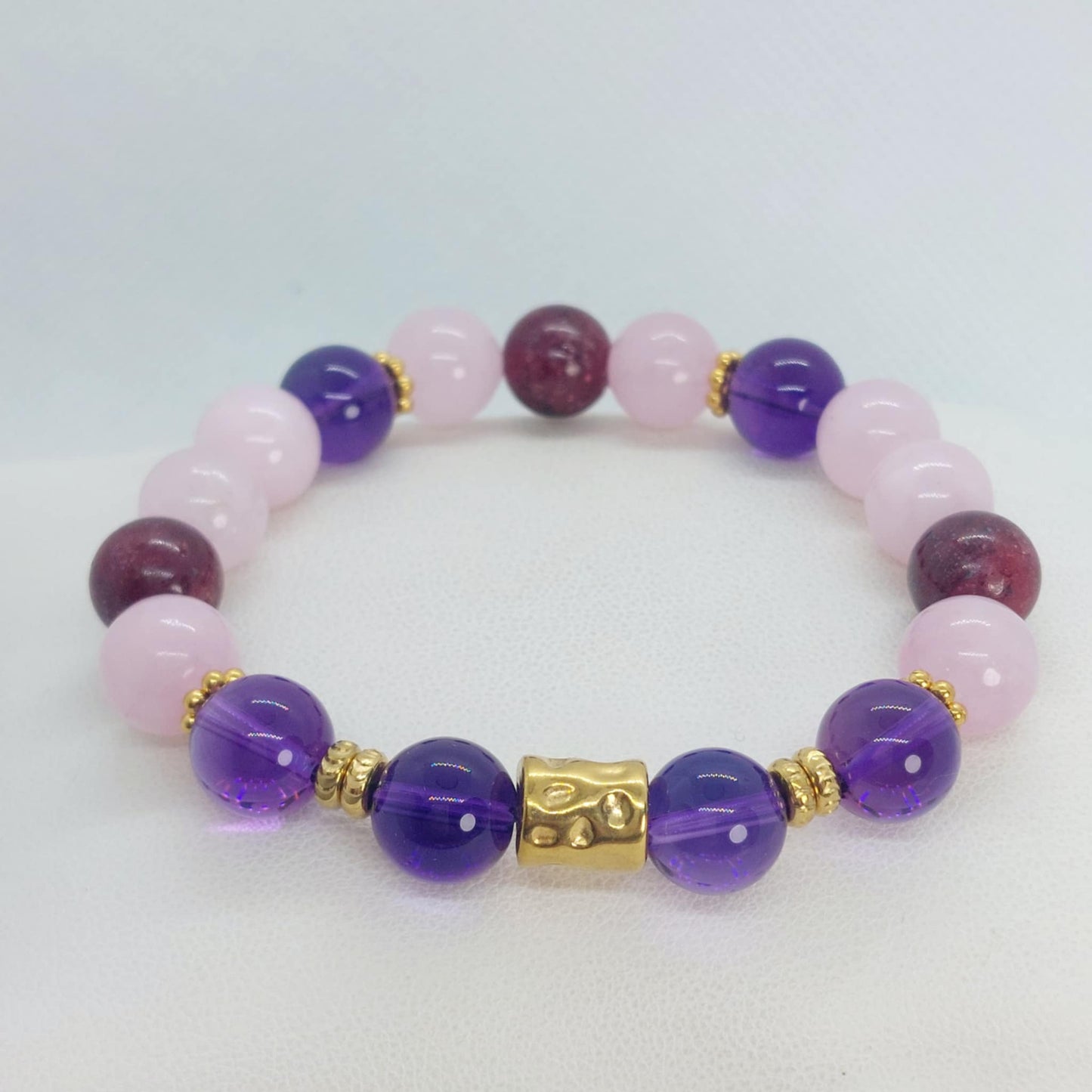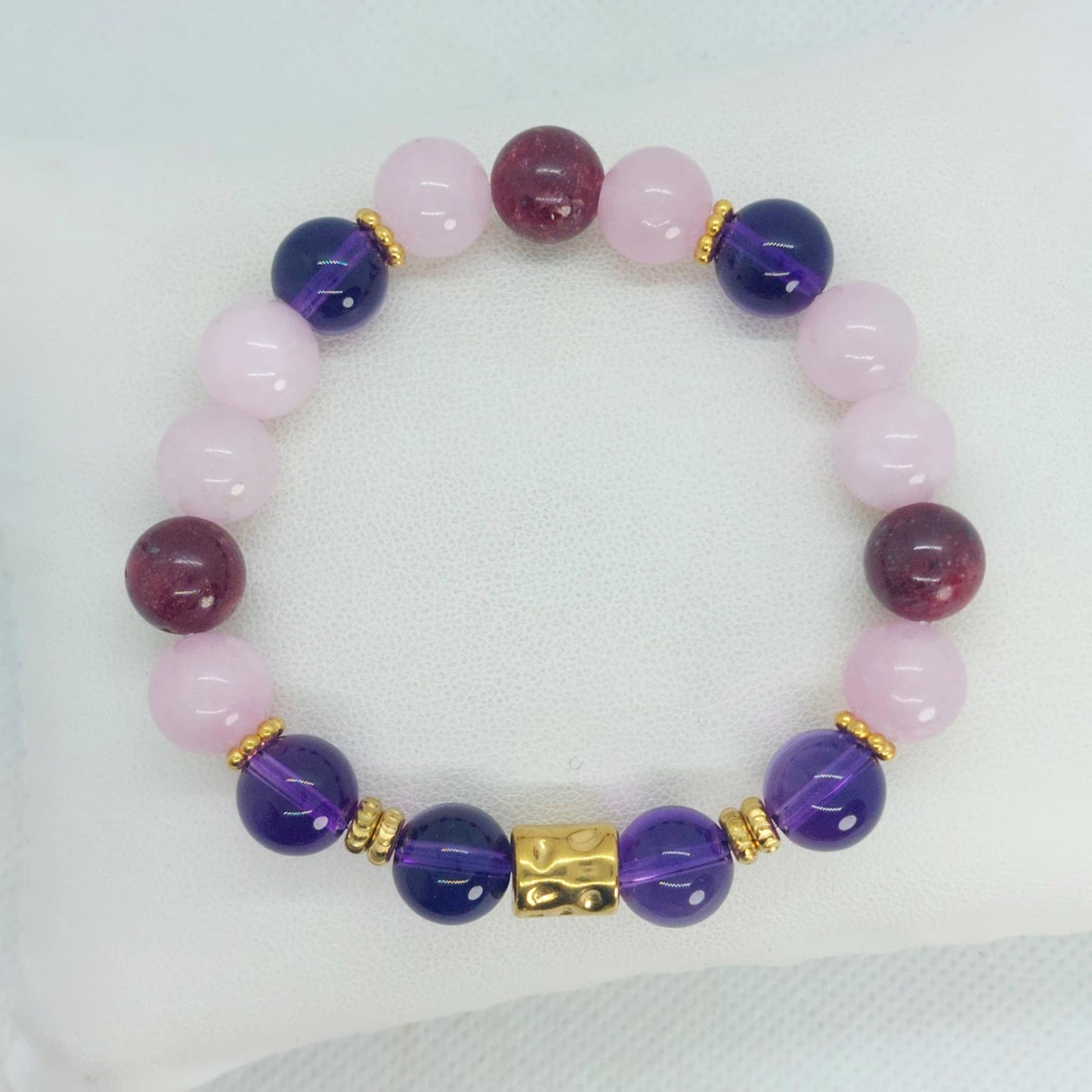 Love and Passion Bracelet with Amethyst, Rose Quartz & Ruby in 10mm Natural Stones