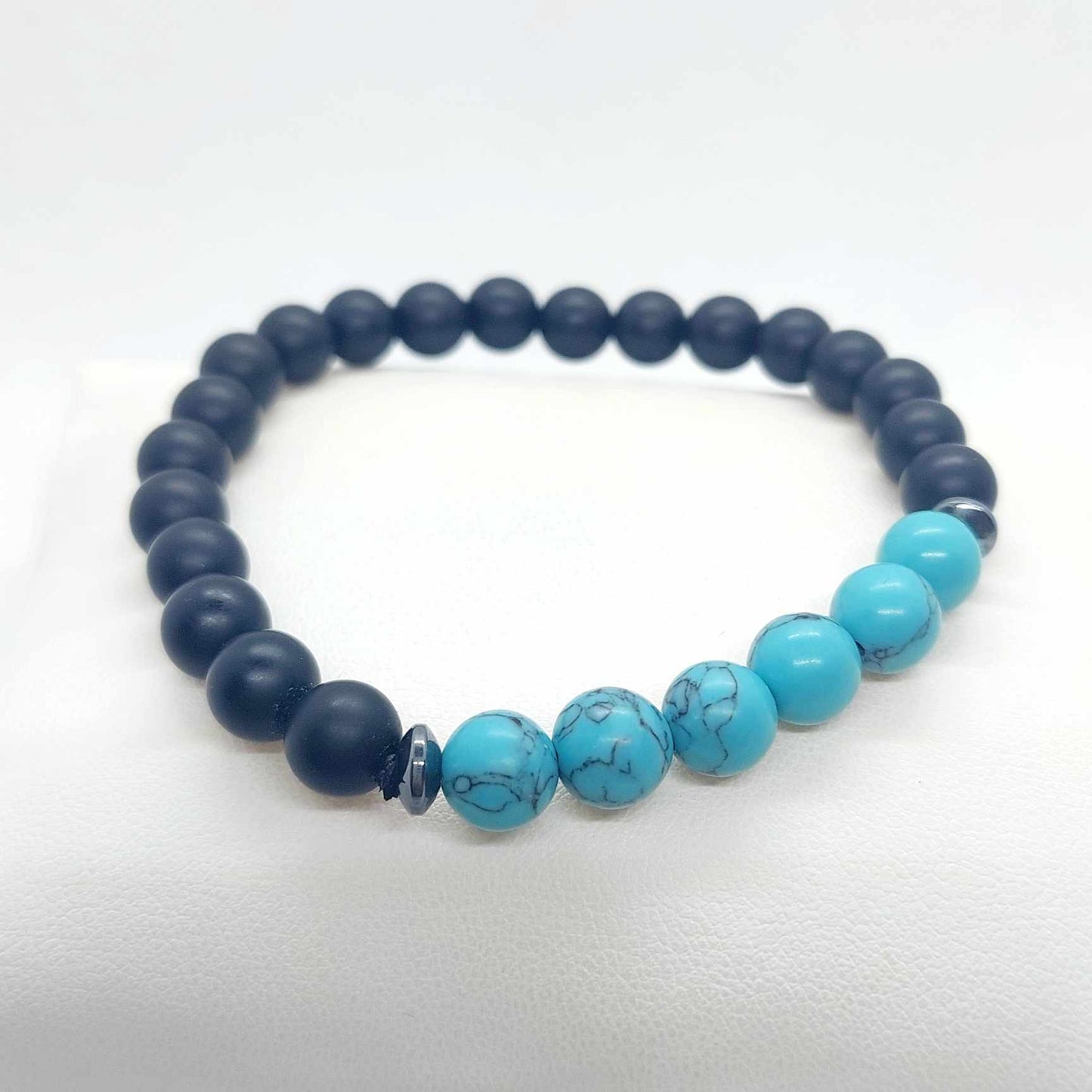 Multi Layer Black Leather Band and Black Onyx with Turquoise Bead Bracelet for Men