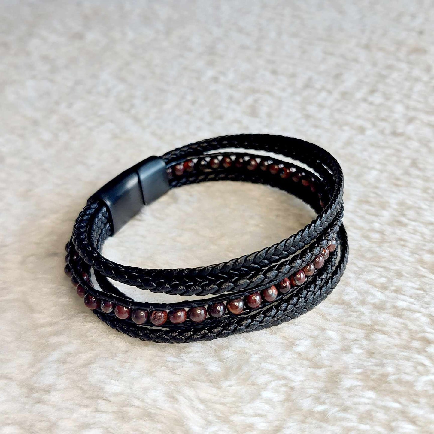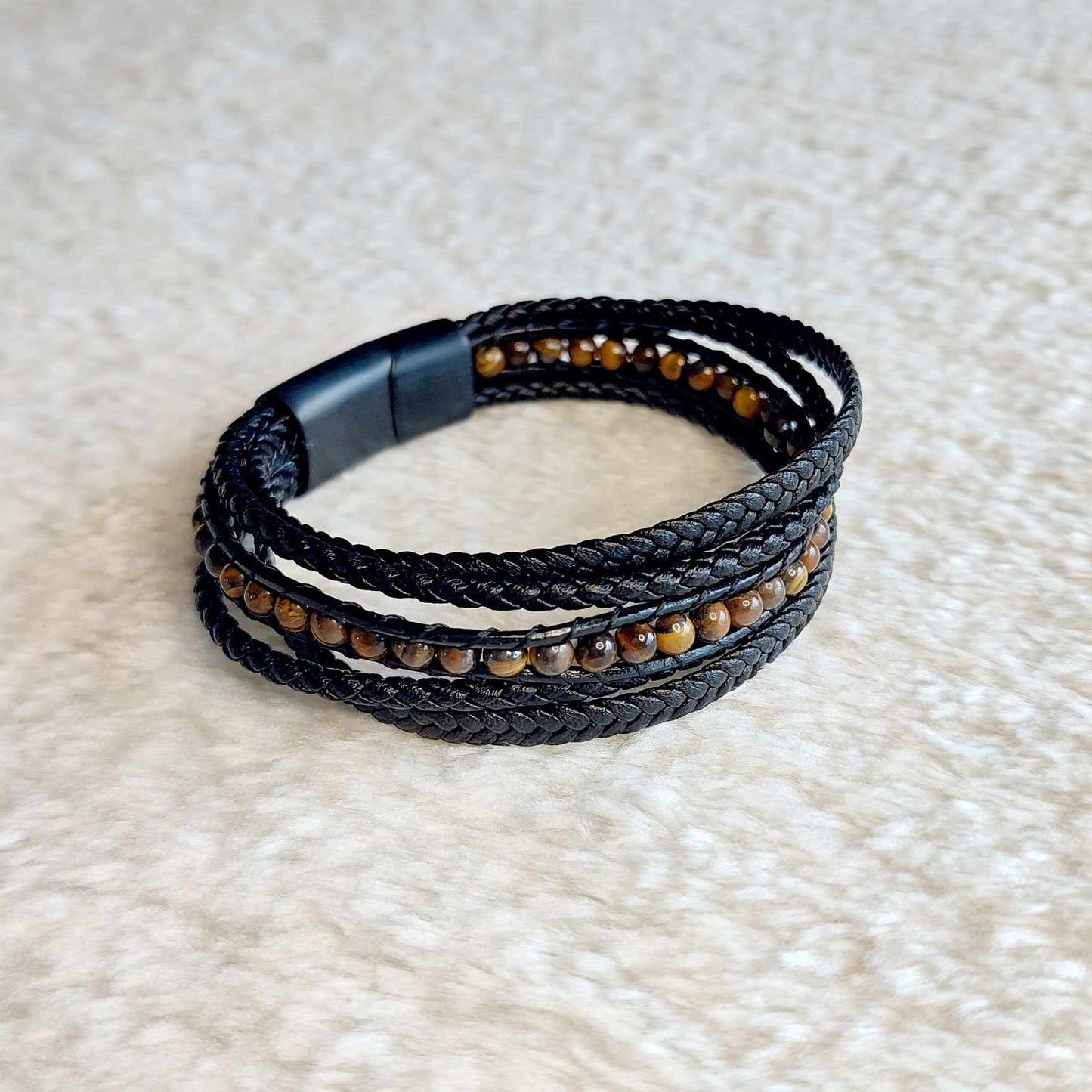 Multi Strap with Tiger Eye Leather Bracelets for Men