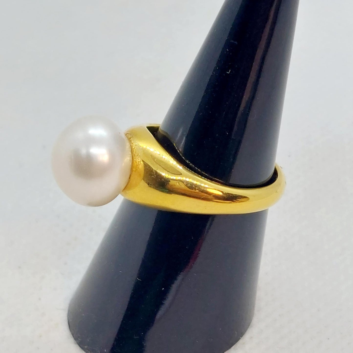 Natural 12mm Pearl Ring in Gold Plated Stainless Steel