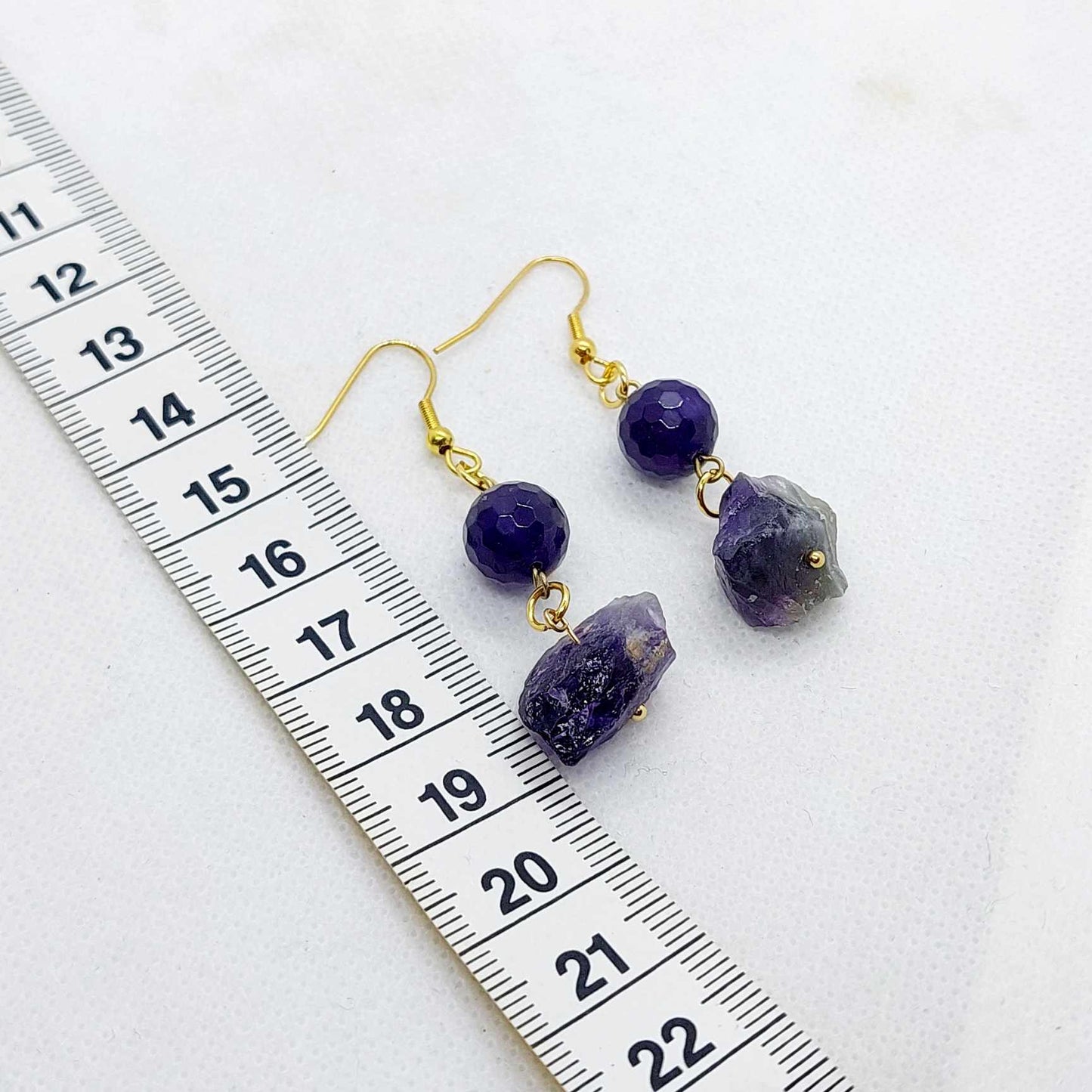 Natural Amethyst Dangle Stud Earrings in Gold Plated Stainless Steel