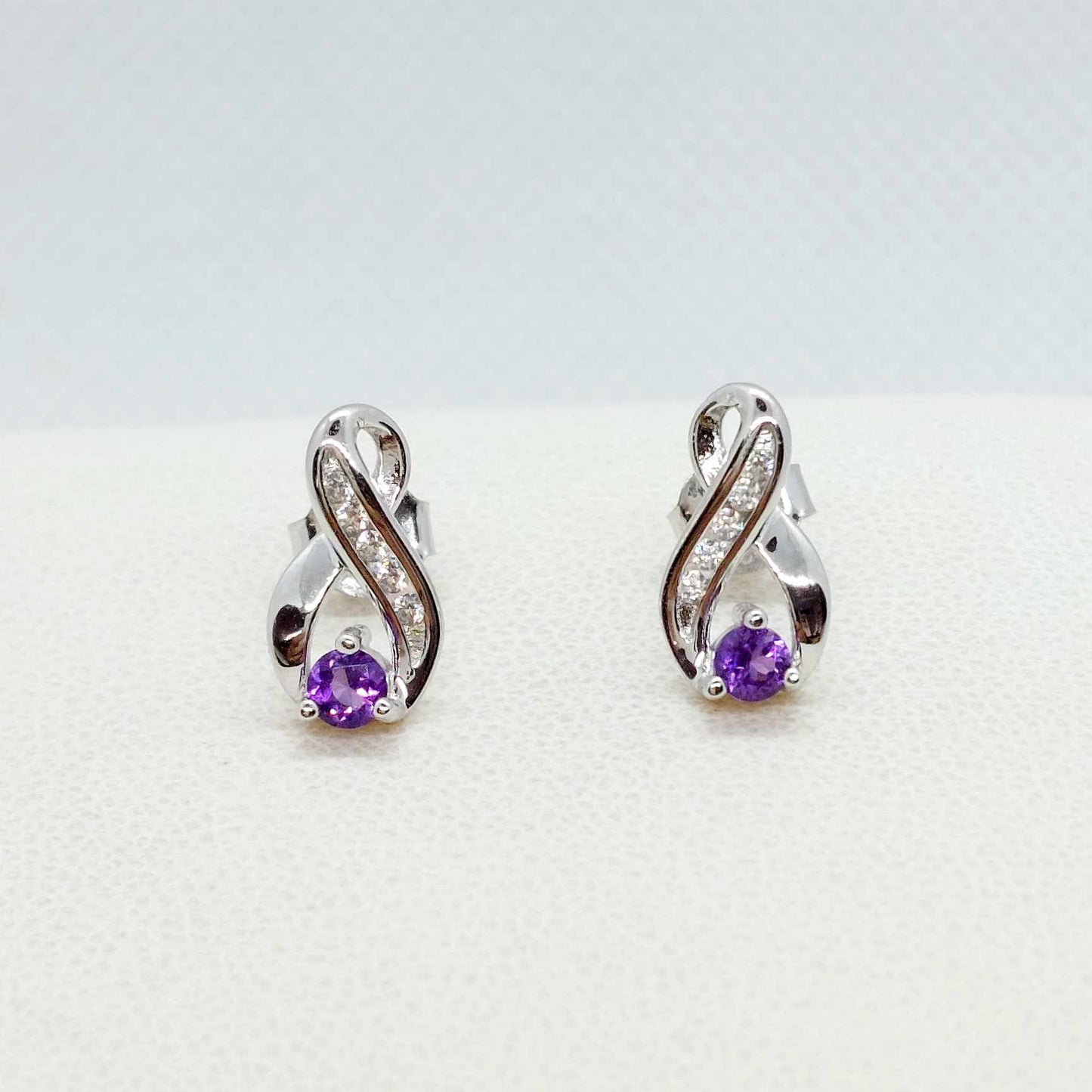 Natural Amethyst Infinity Earrings with 0.2ct Stones in Sterling Silver