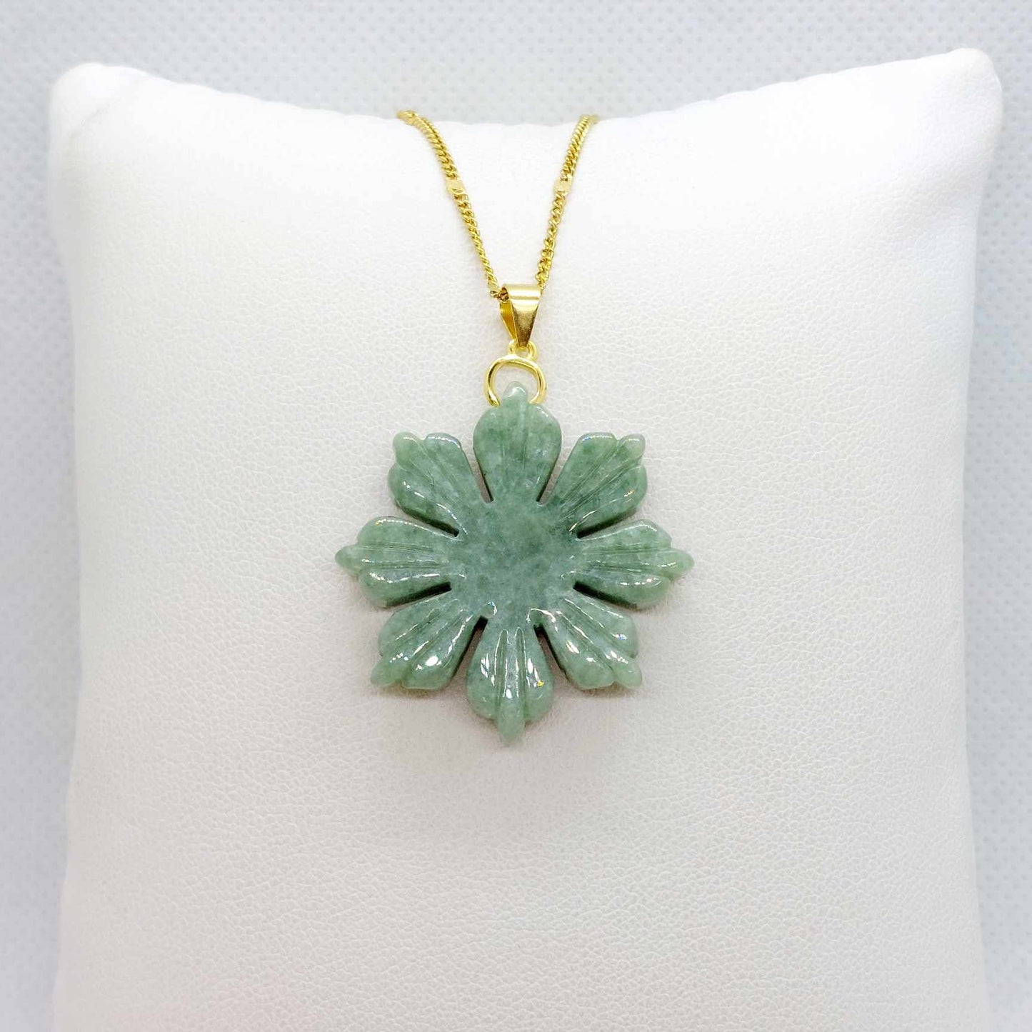 Natural Burmese Jade Sunflower Pendant with Gold Plated Stainless Steel Chain Necklace