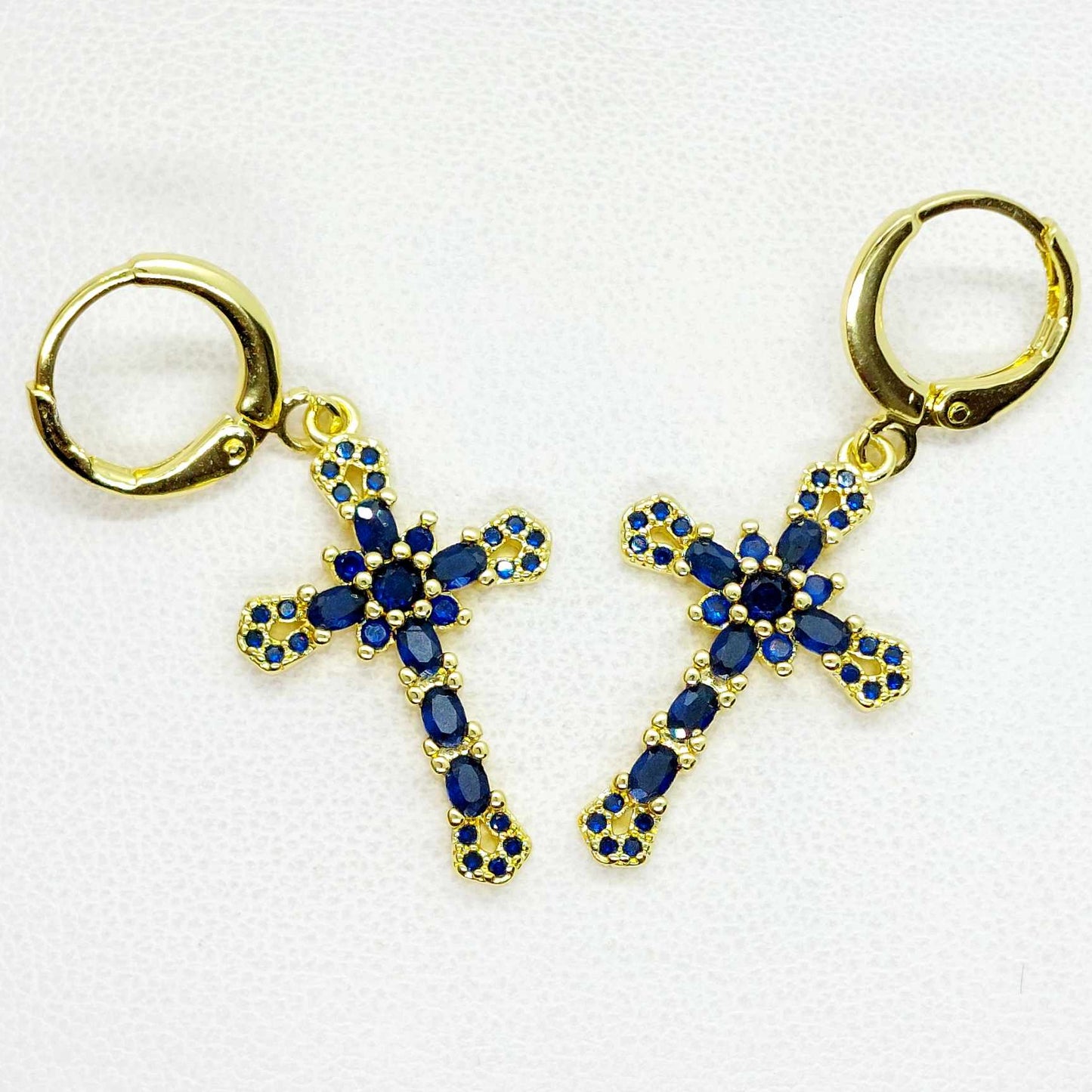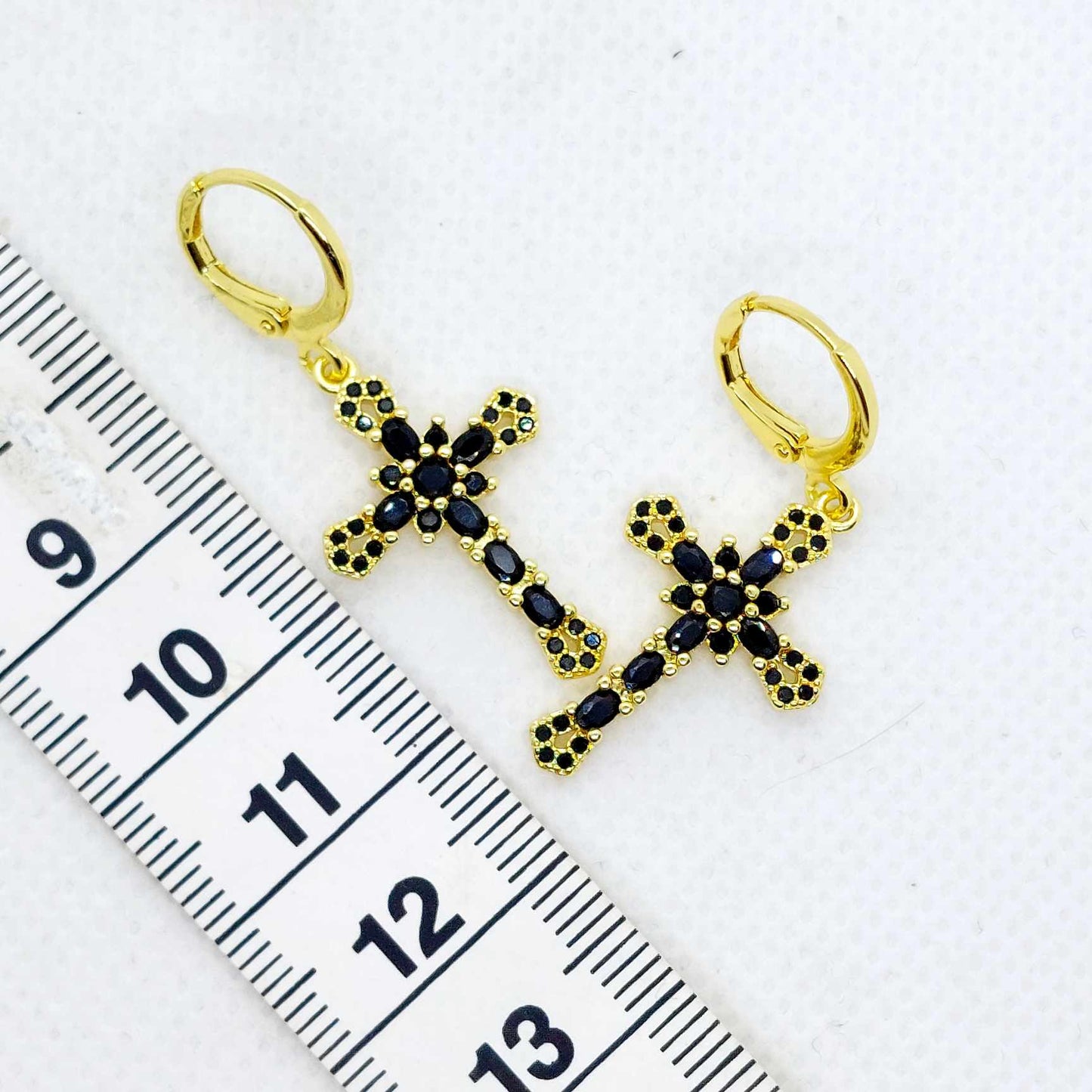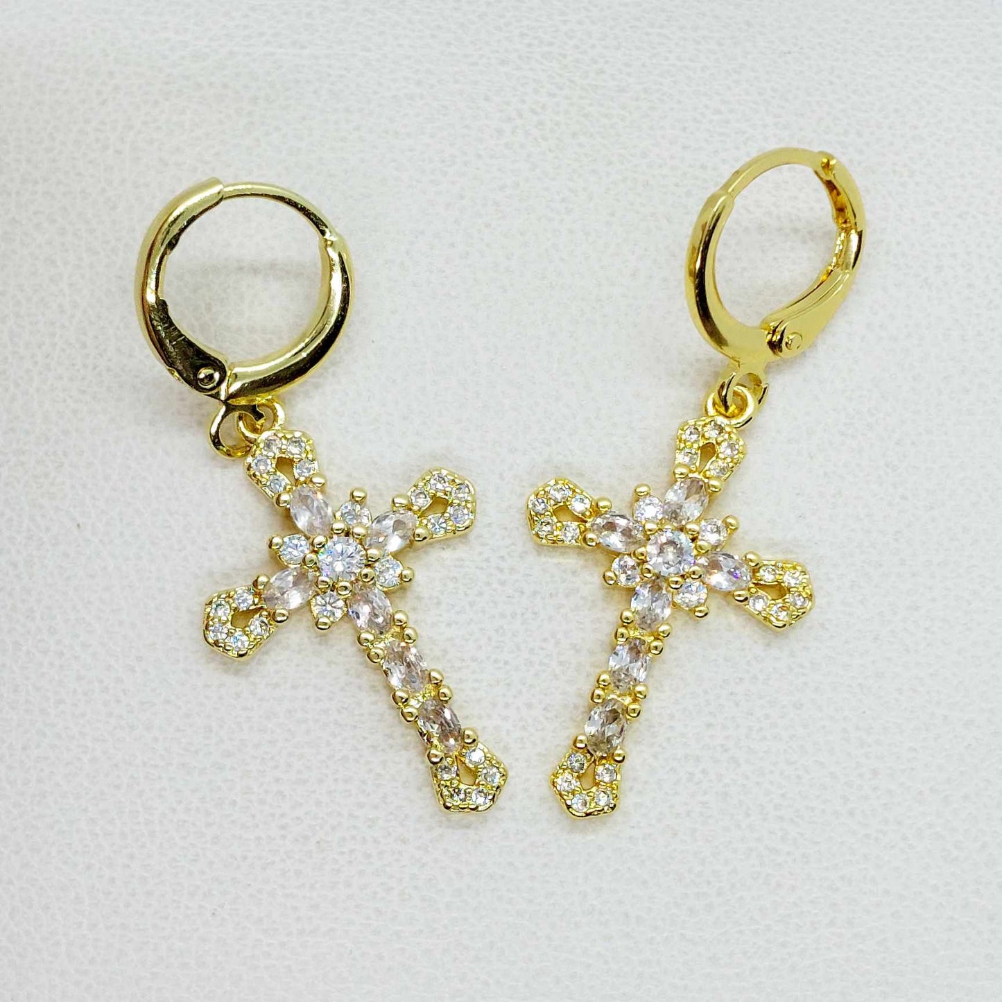 Cubic Zirconia Cross Earrings in Gold Plated Stainless Steel