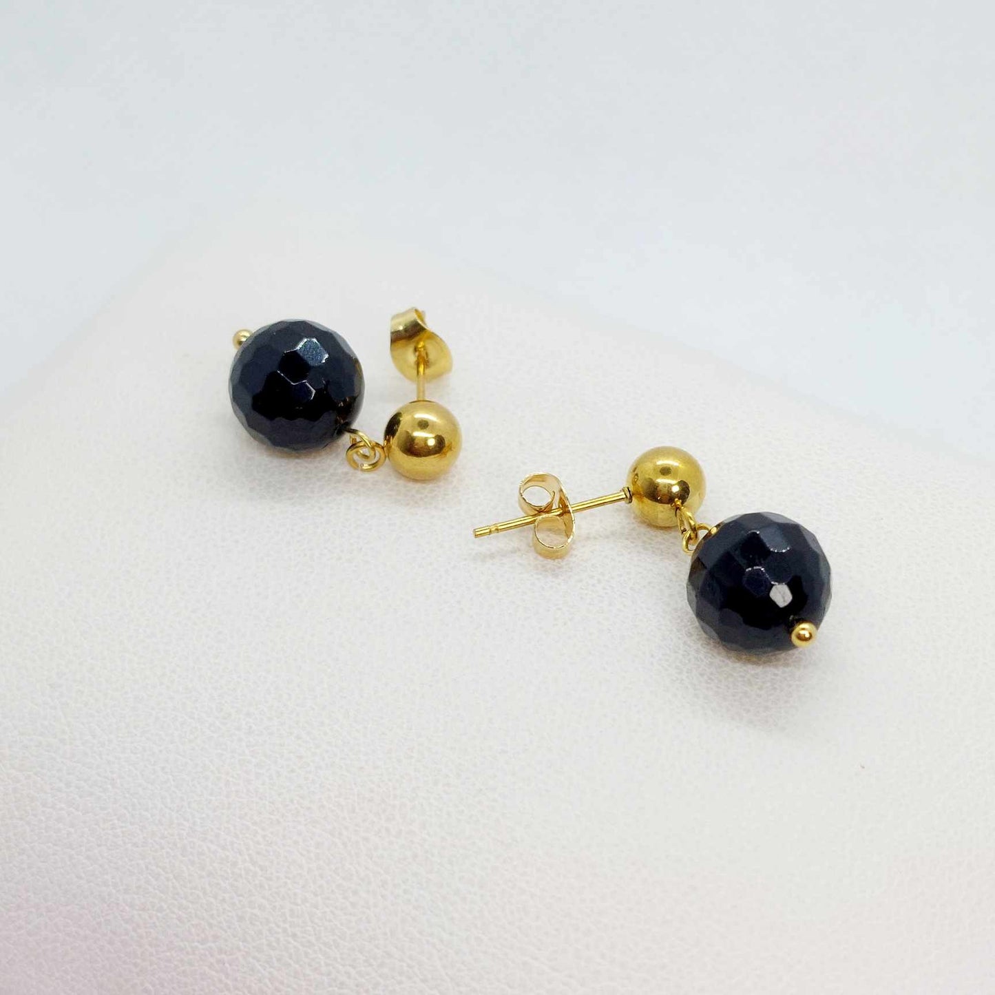 Natural Faceted Black Onyx Necklace and Earrings Set with 10mm Stones