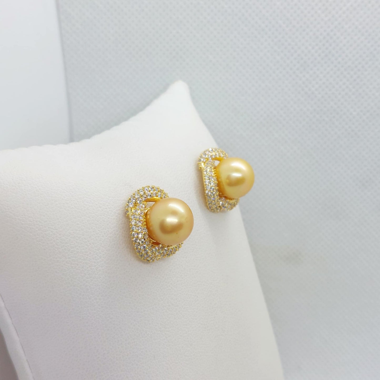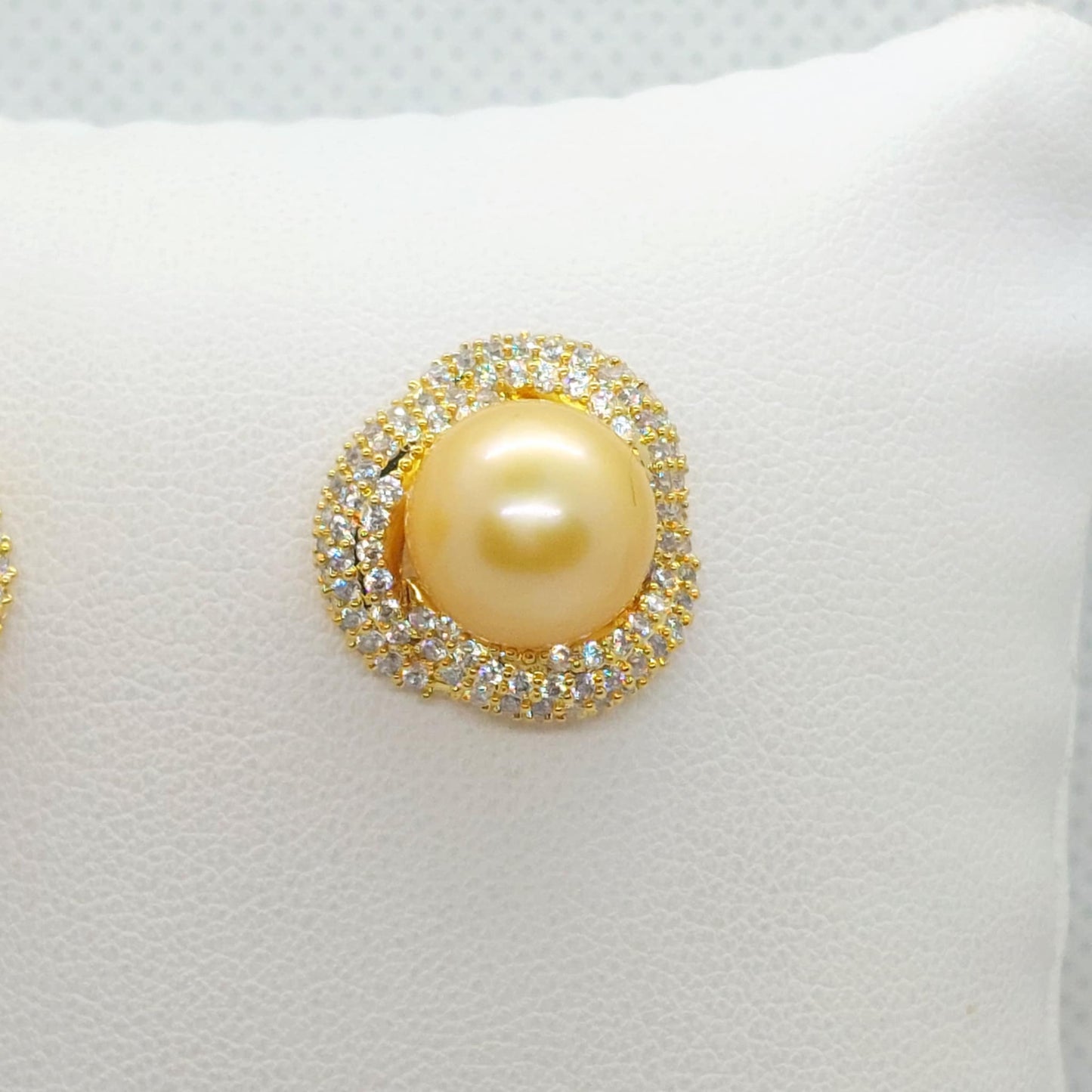 Natural Golden 10mm South Sea Pearl Set in Gold Plated Sterling Silver
