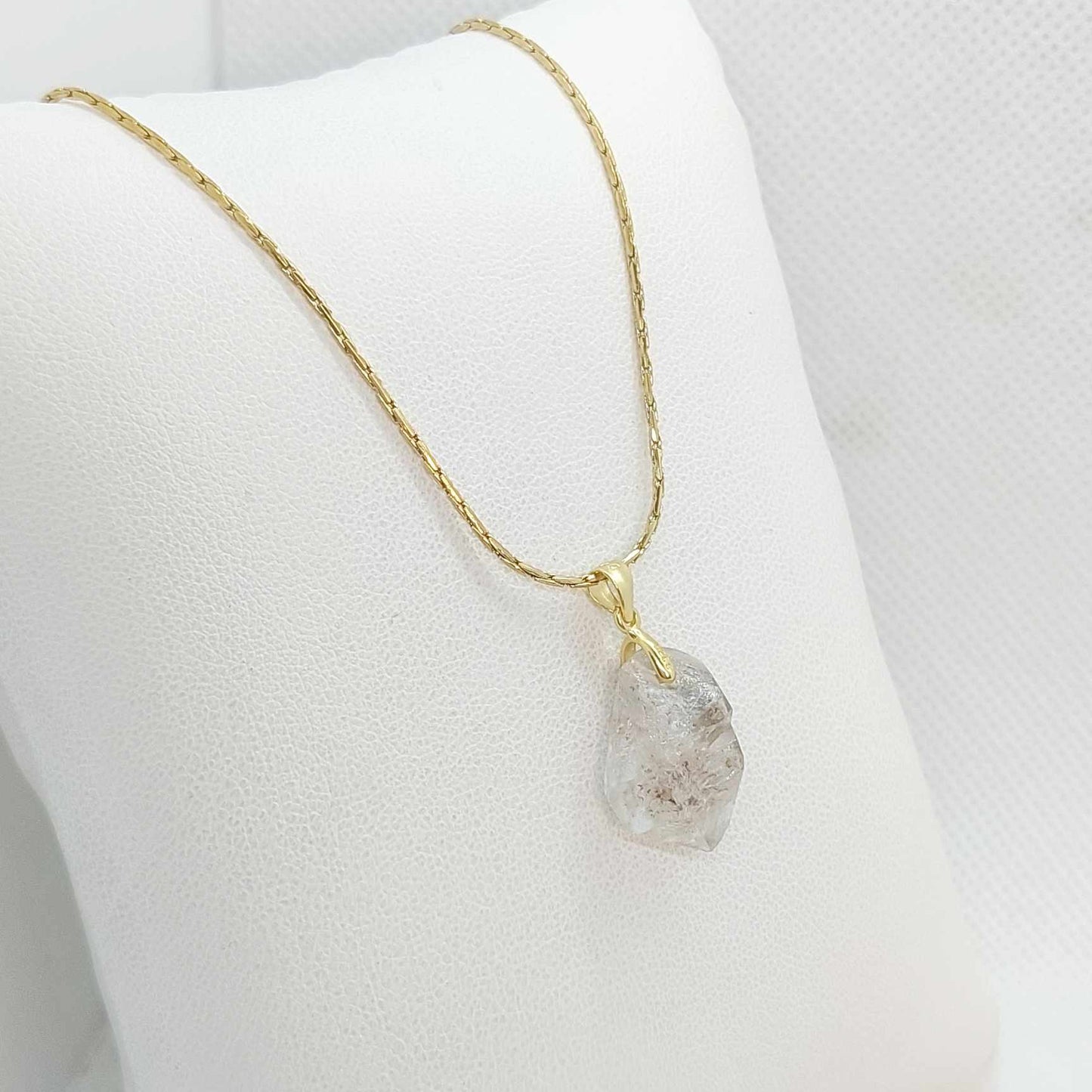 Natural Herkimer Diamond Pendant with Stainless Steel Gold Plated Necklace Chain