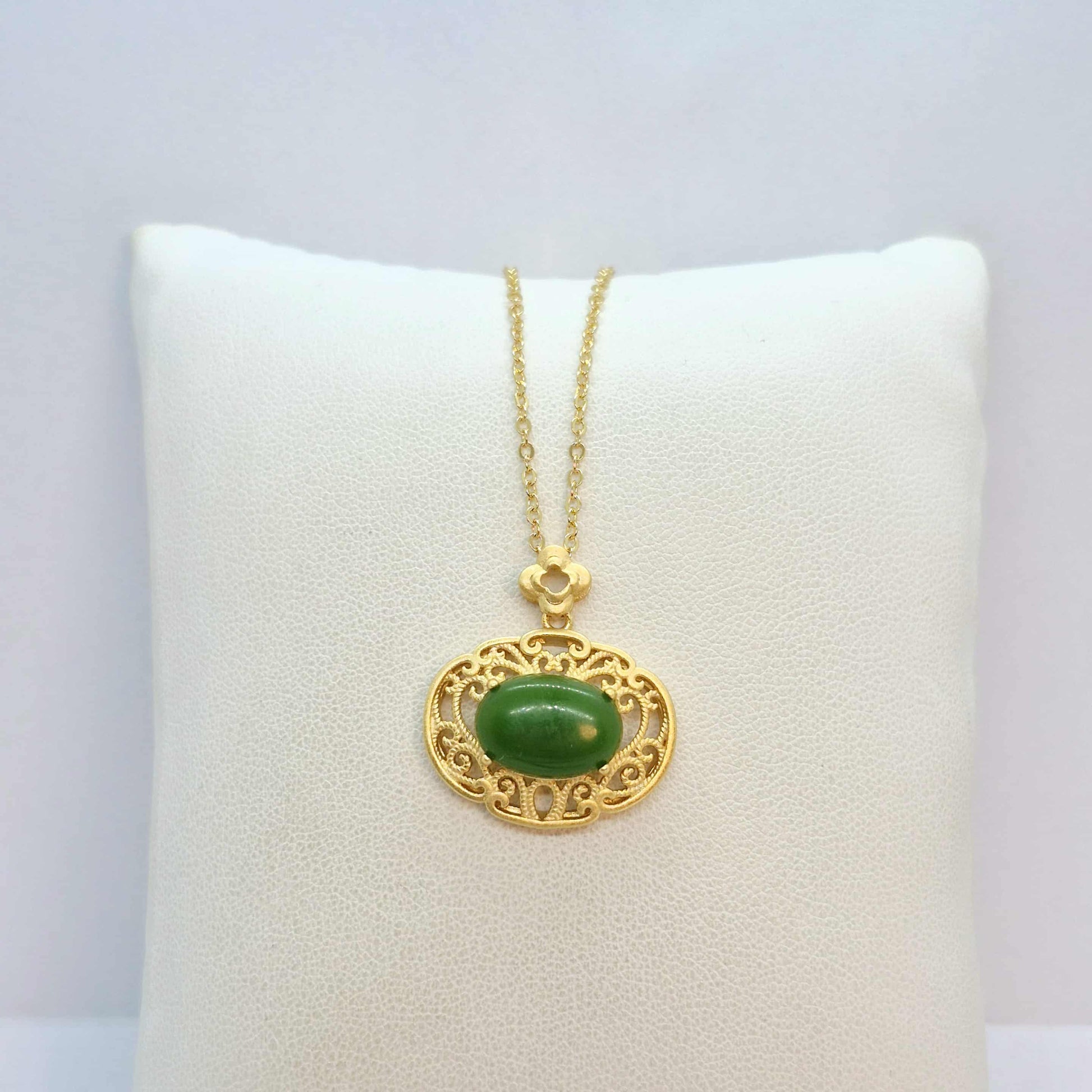 Natural Hetian Jade Pendant Silver Plated with Chain Necklace