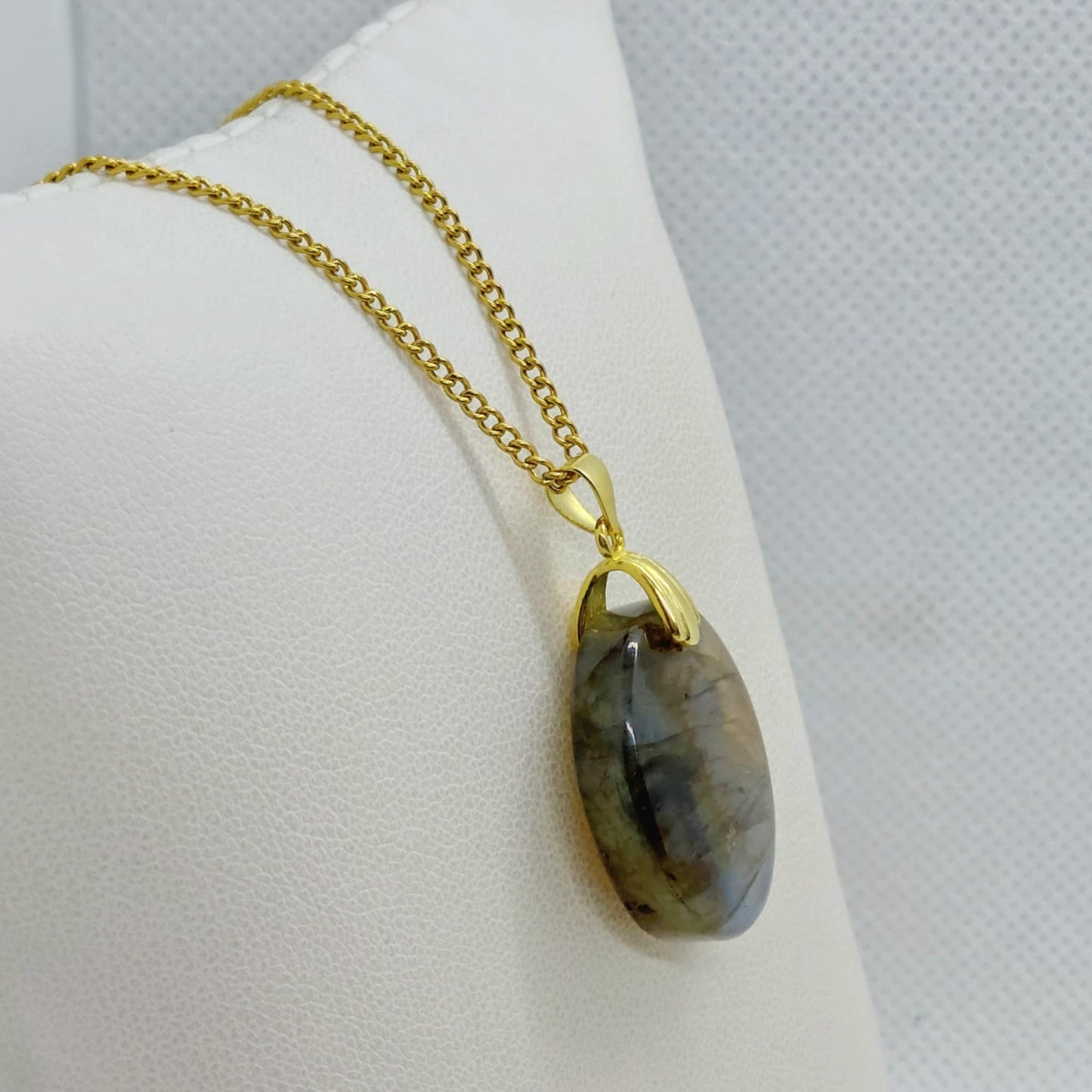 Natural Labradorite Stone Pendant with Gold Plated Stainless Steel Chain Necklace