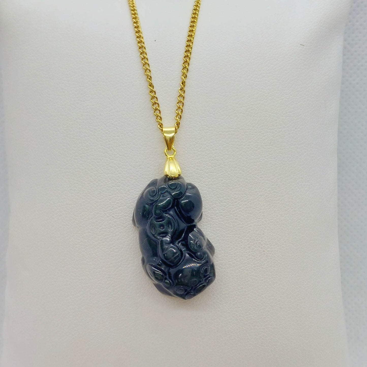 Natural Obsidian Pixiu Pendant with Stainless Steel Gold Plated Chain Necklace