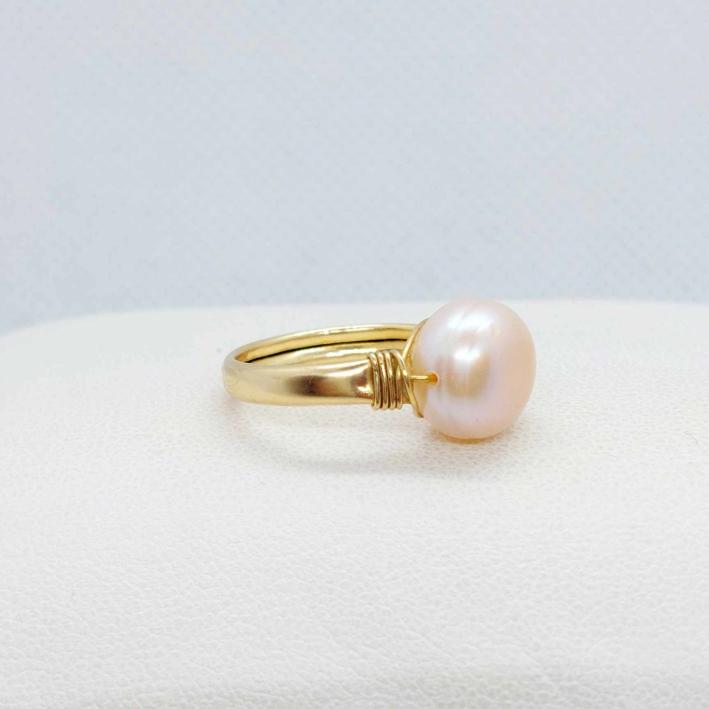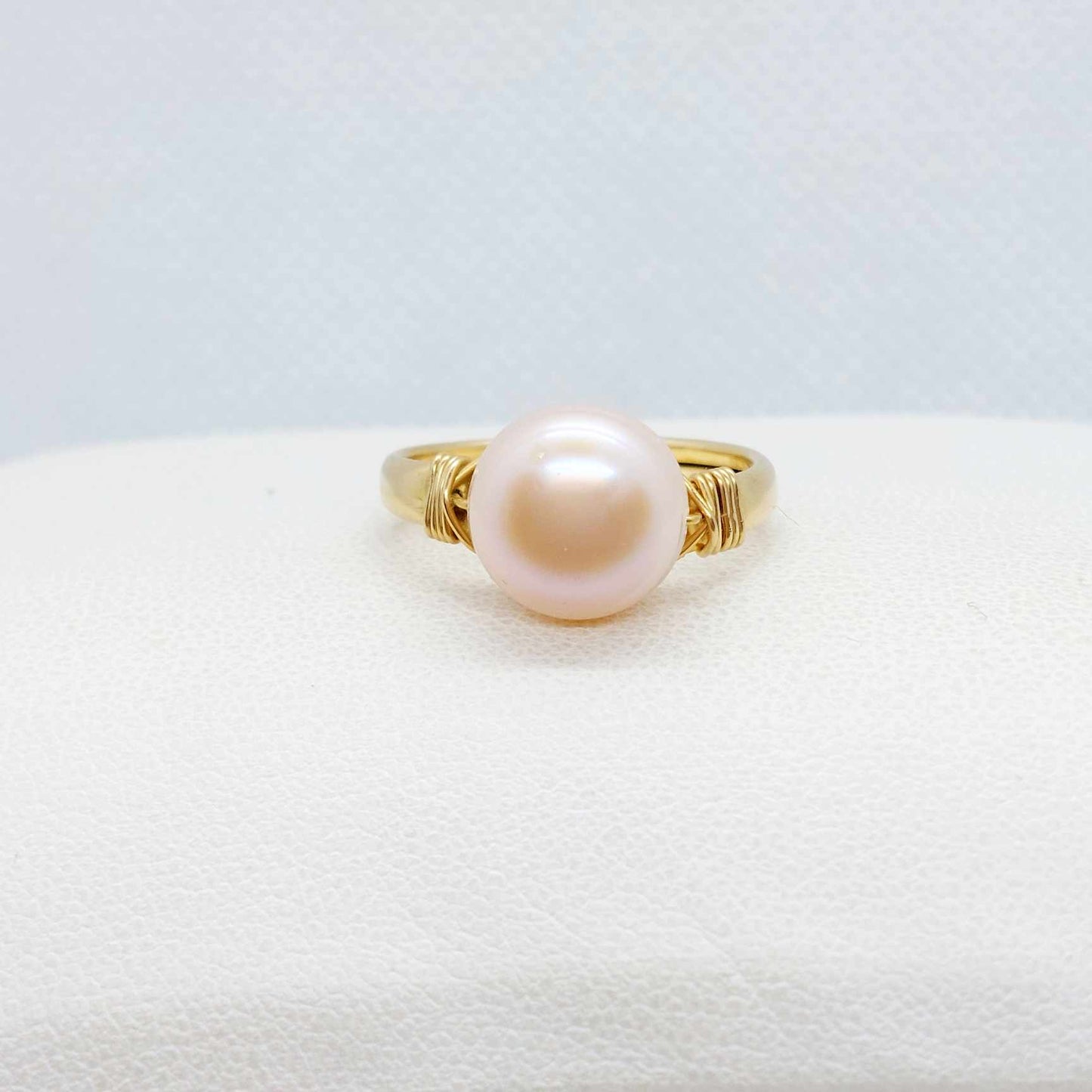 Natural Peach Pearl Ring with 12mm Stone in Solid 10K Gold