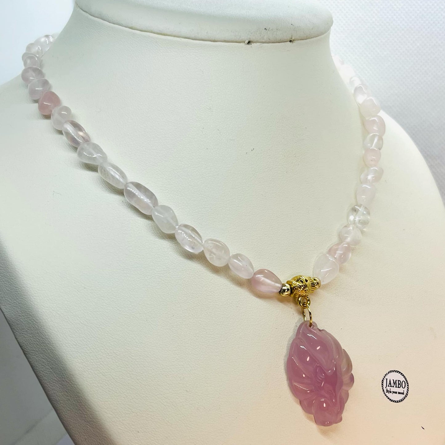 Natural Rose Quartz Choker with Purple Chalcedony Nine Tailed Fox Pendant Necklace