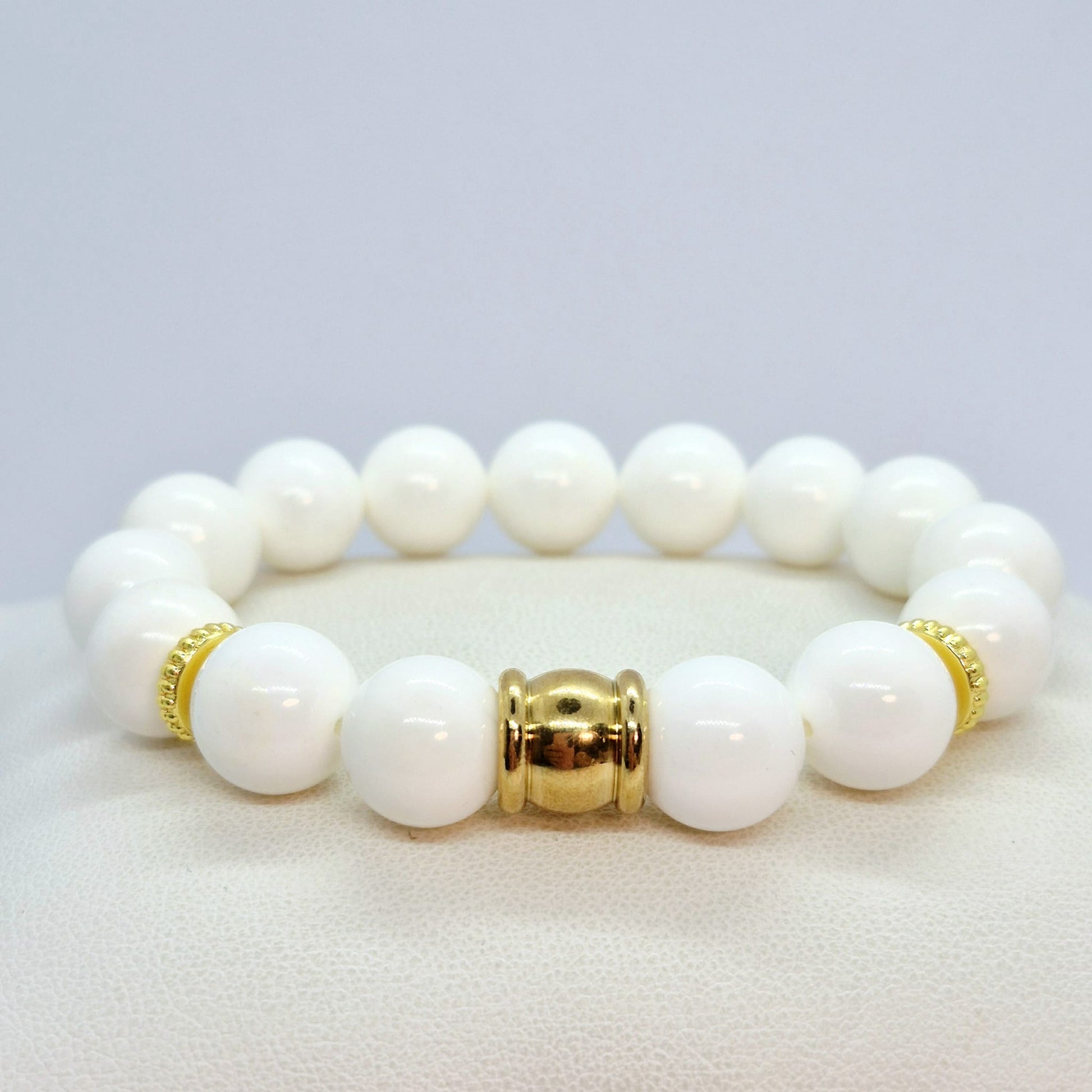 Dive into the ocean's treasures with this captivating 12mm Tridacna bracelet, sourced straight from the sea's most precious gifts. These lustrous shells have been revered for centuries as symbols of protection and calm, believed to carry the soothing energy of the waves. Each stone tells a story of the deep, with its natural iridescence and unique patterns creating an enchanting shimmer. Wear it to invite tranquility, boost emotional balance, and channel the ocean's ancient wisdom. A wearable escape that reminds you to breathe, flow, and embrace life's natural rhythms.