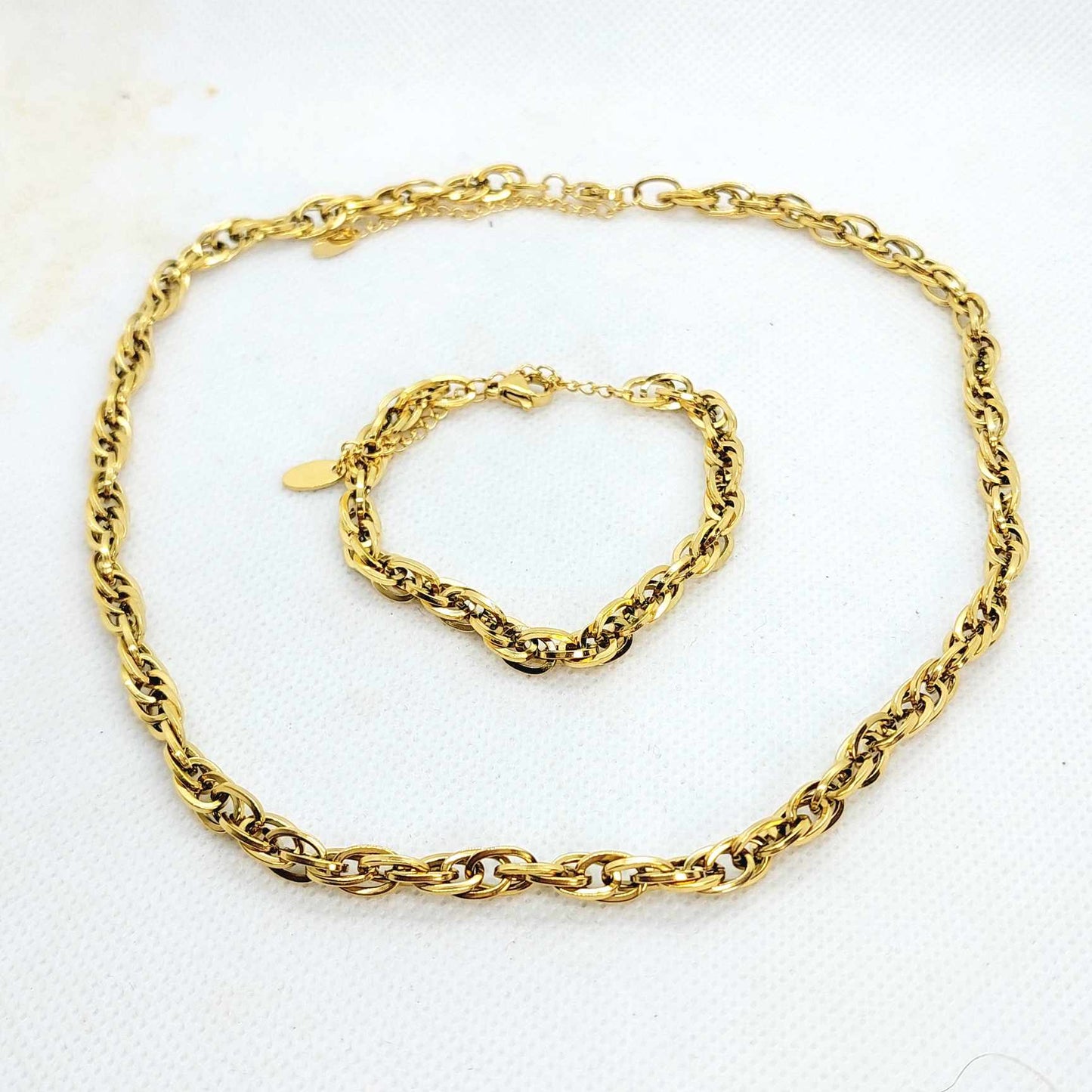 Necklace and Bracelet Set in Stainless Steel Gold Plated