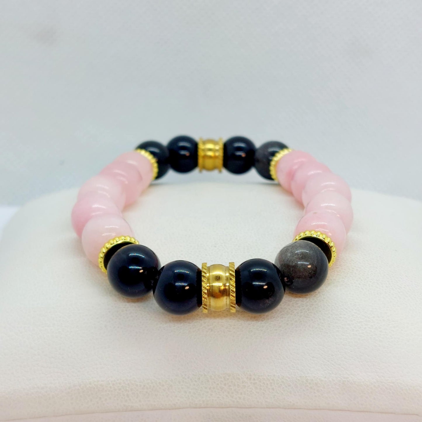 Obsidian and Rose Quartz Bracelet in 10mm Natural Stones