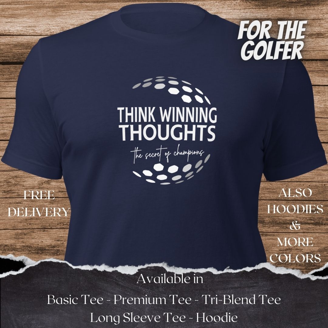 Think Winning Thoughts Golf TShirt and Hoodie is a Creative Golf Graphic design for Men and Women