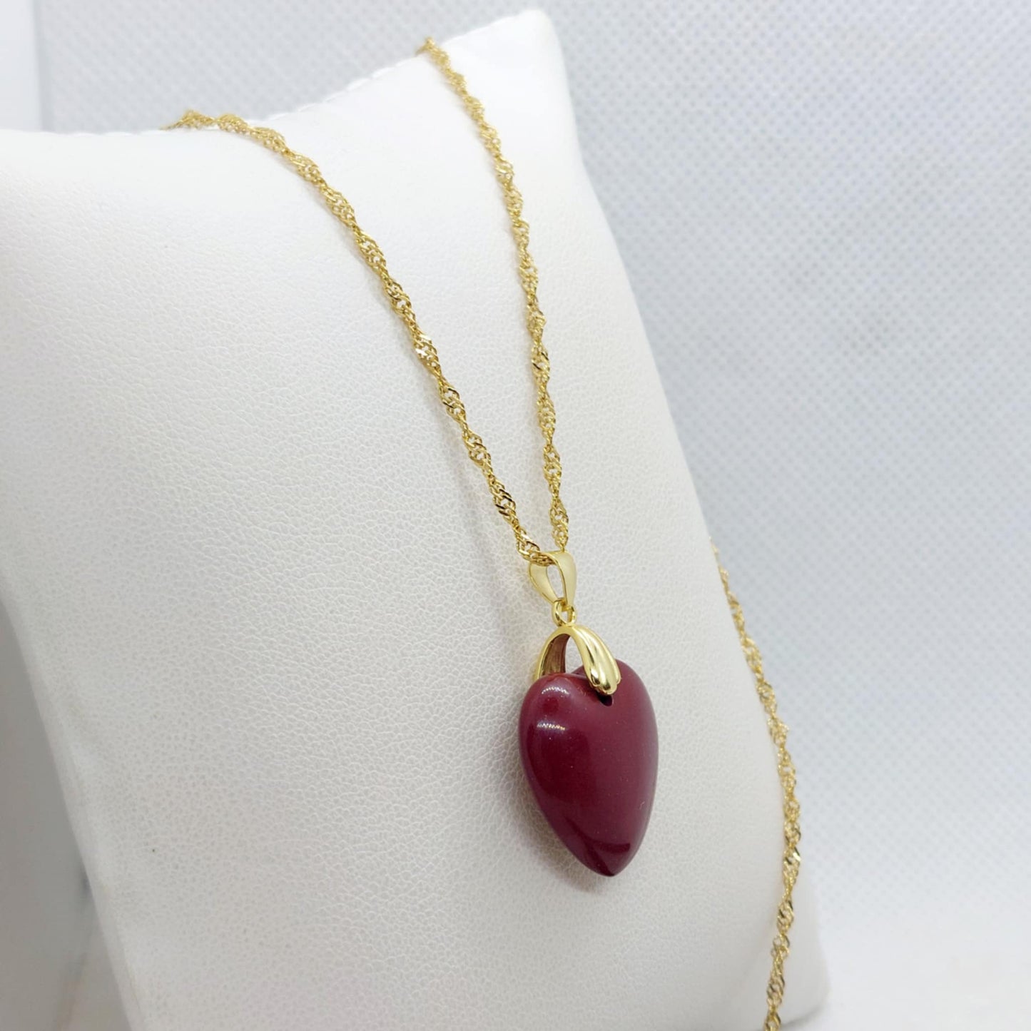 Vermilion Cinnabar Heart Pendant with Stainless Steel Necklace