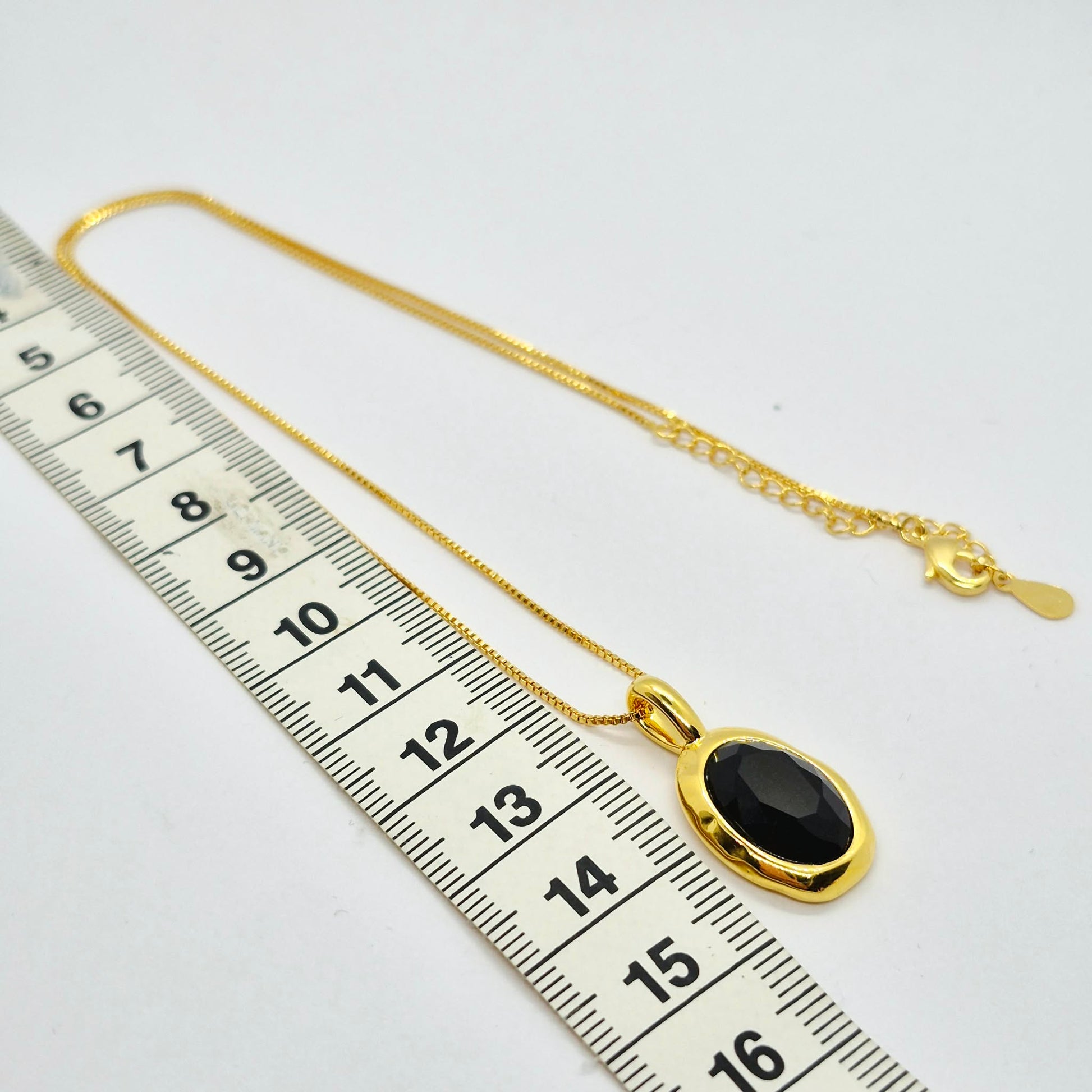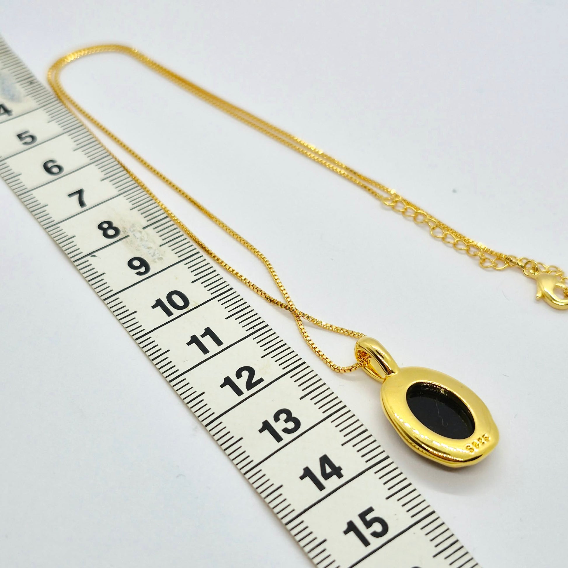 Natural Black Agate Pendant Necklace in Gold Platted Sterling Silver