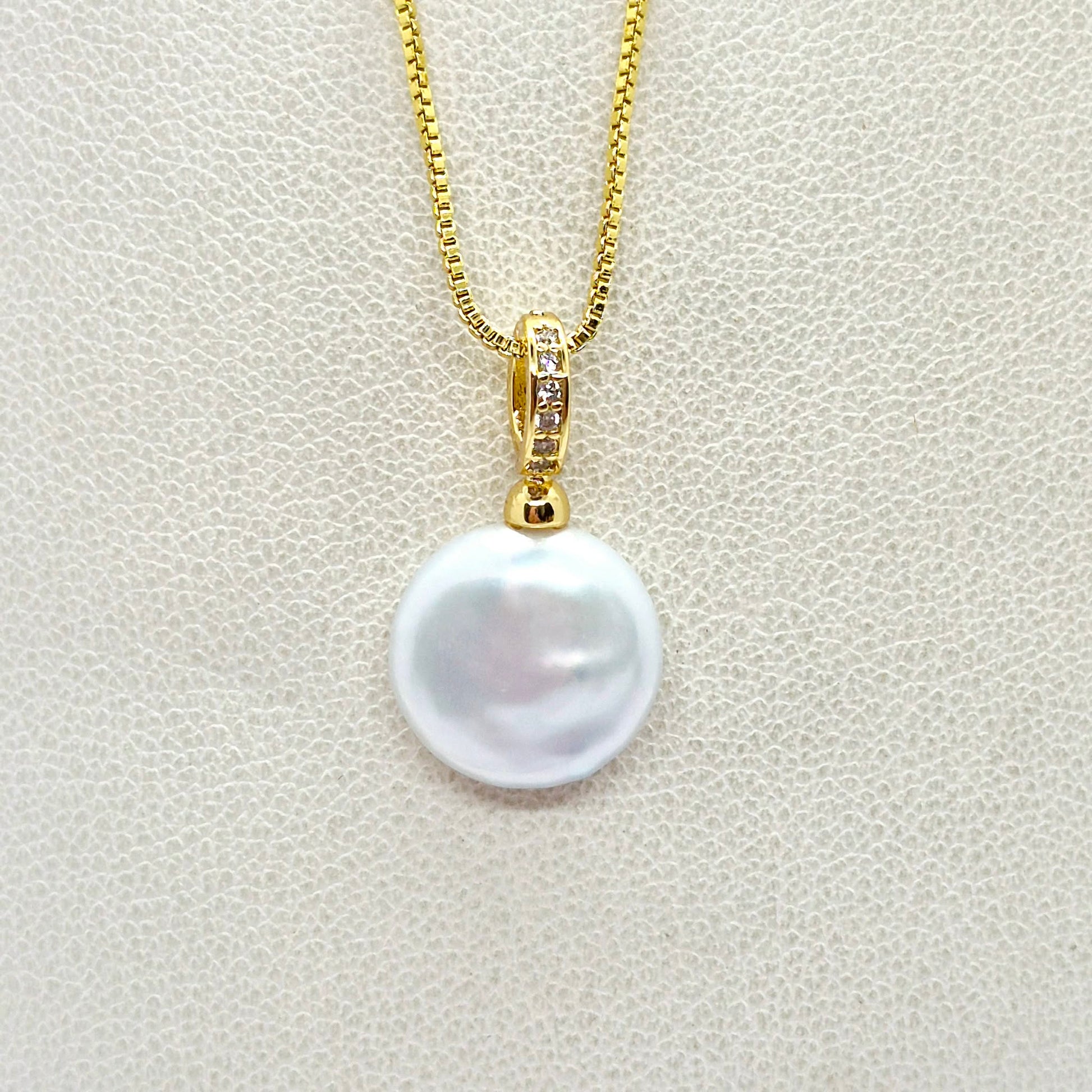 Natural Button Pearl Pendant Necklace in Gold Platted Sterling Silver