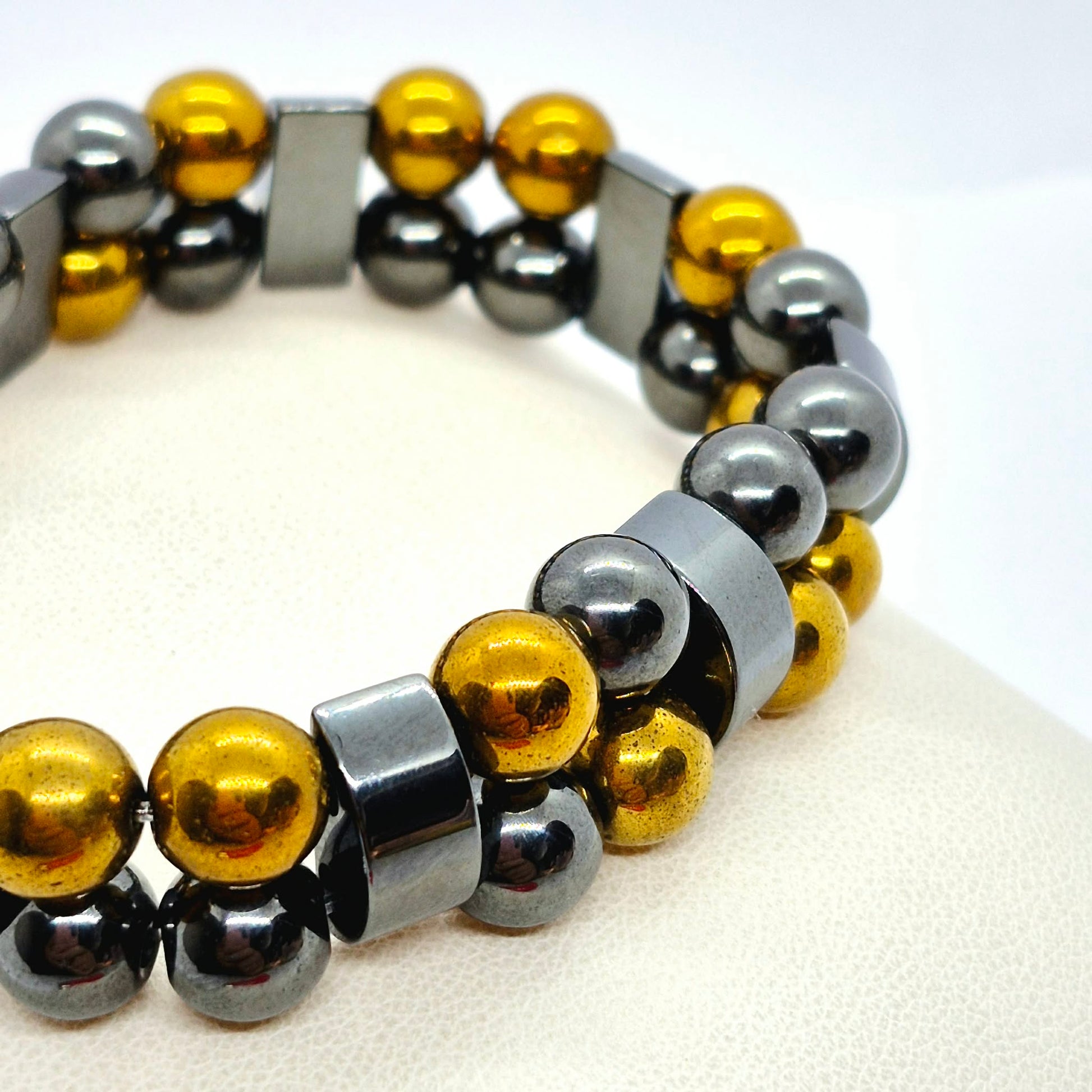 Natural Hematite Double Band Bracelet in 8mm Stones