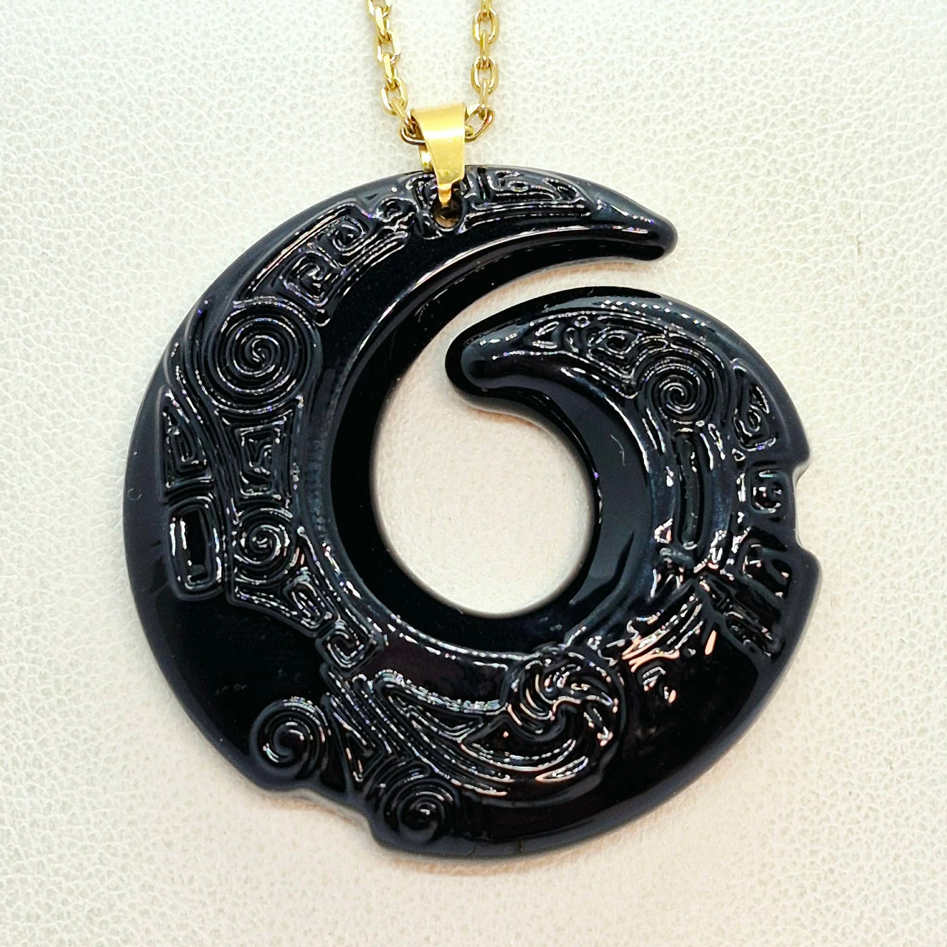 Natural Obsidian Pendant in Gold Plated Stainless Steel with Chain Necklace