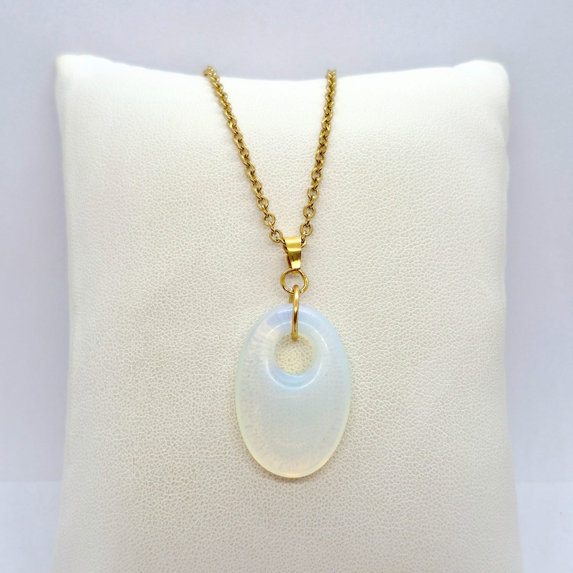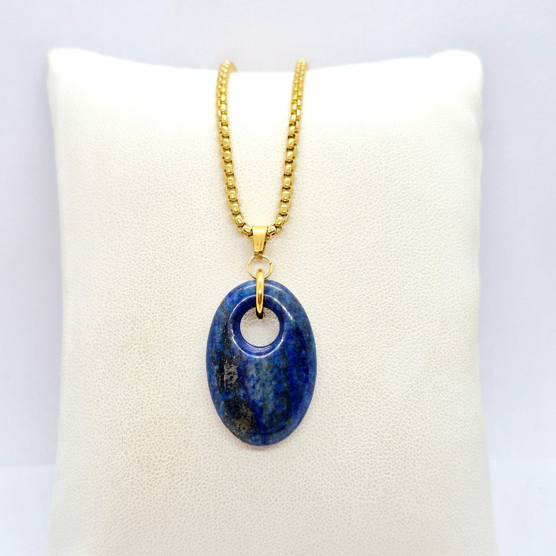 Natural Stone Pendant in Obsidian, Opal or Lapis with Stainless Steel Gold Plated Chain Necklace