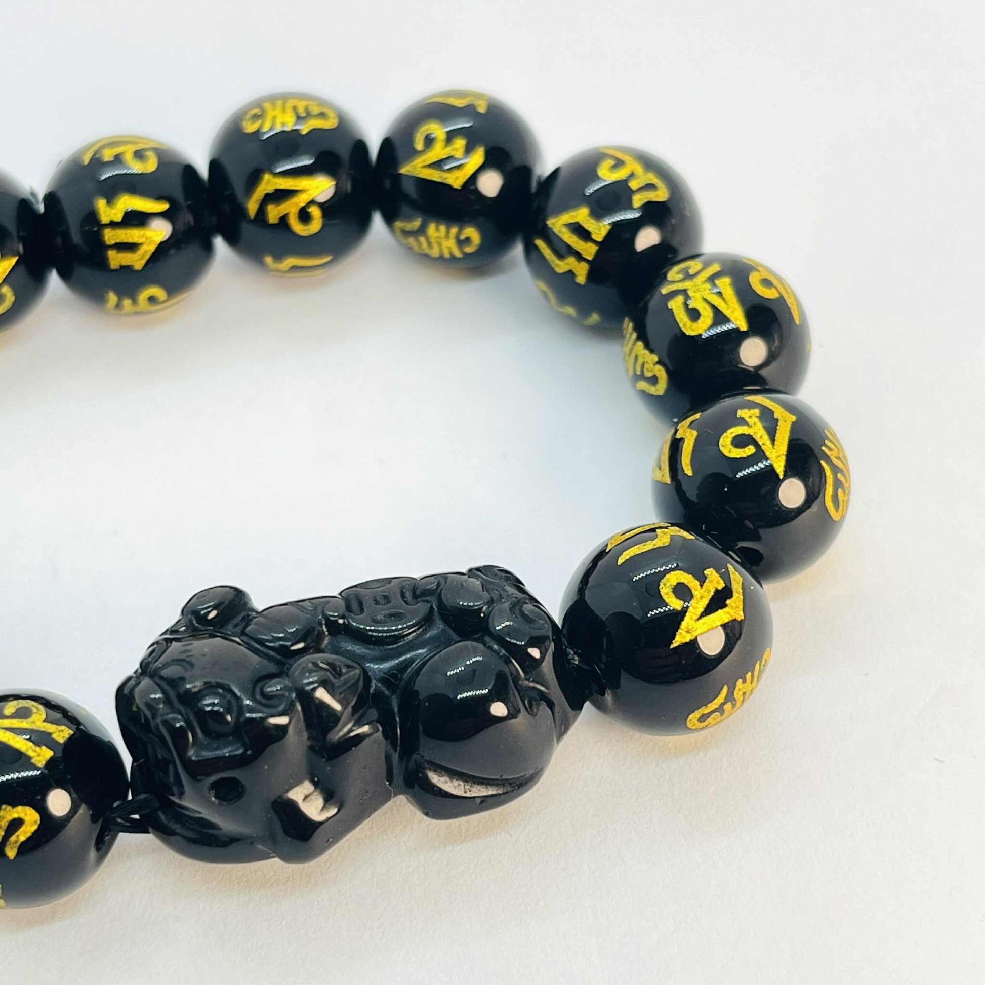 Natural Obsidian Bracelet in 14mm Stones with Obsidian Pixiu