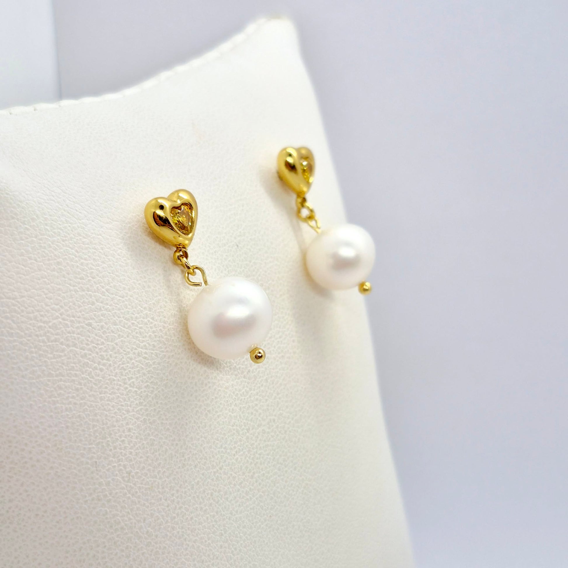 Natural 10mm Pearl Earrings in Gold Plated Stainless Steel